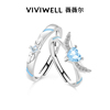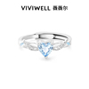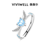 羽你相遇 S925纯银情侣对戒女蓝色爱心闪钻小众设计戒指