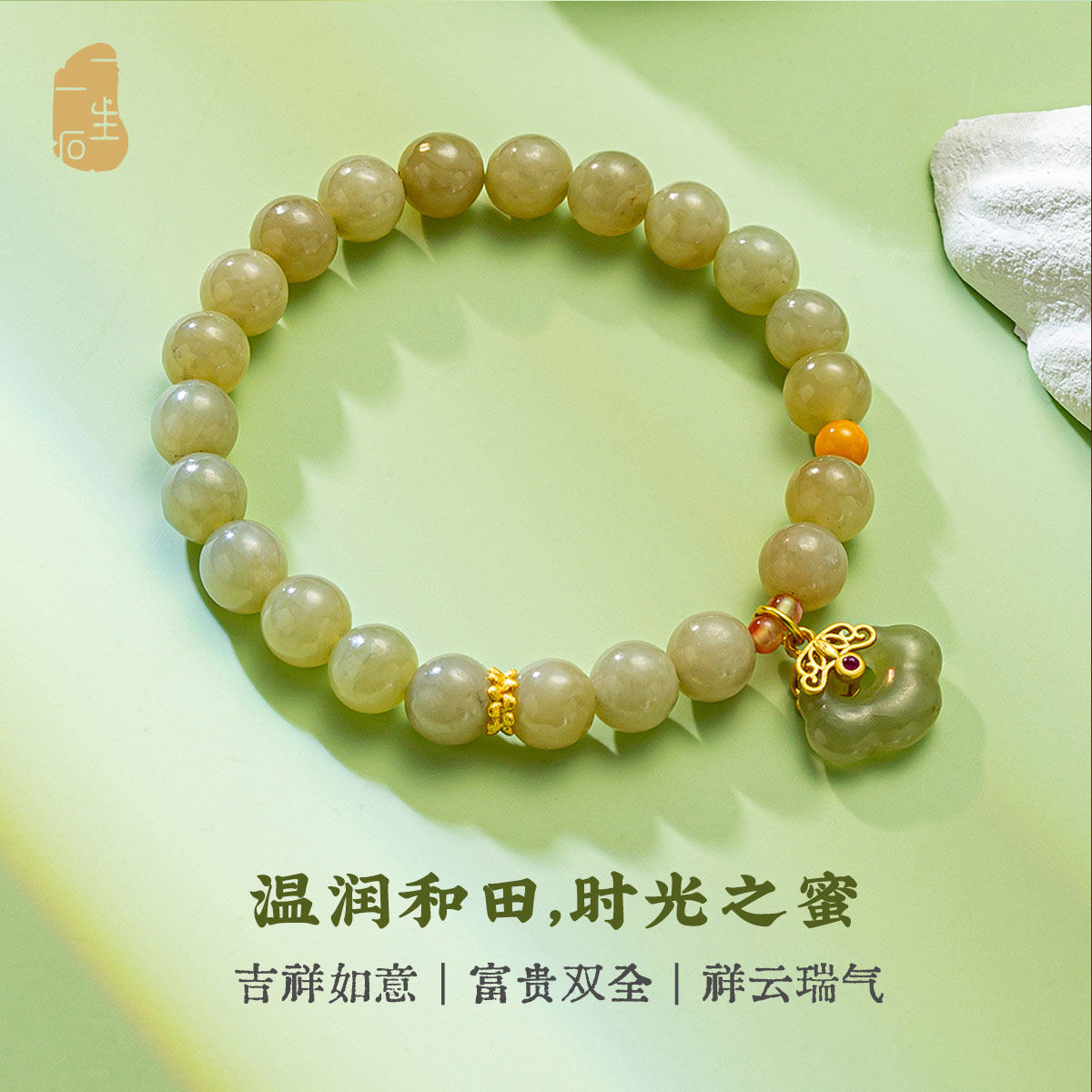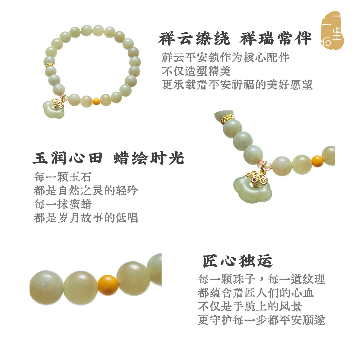 玉珀和鸣正品和田玉蜜蜡手串女生日送礼妈妈女友平安扣寓意美好