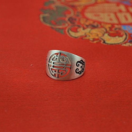 复古999纯银万寿戒指男士宽面食指指环镂空万福寿字礼物银饰
