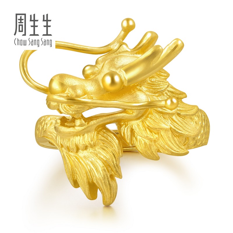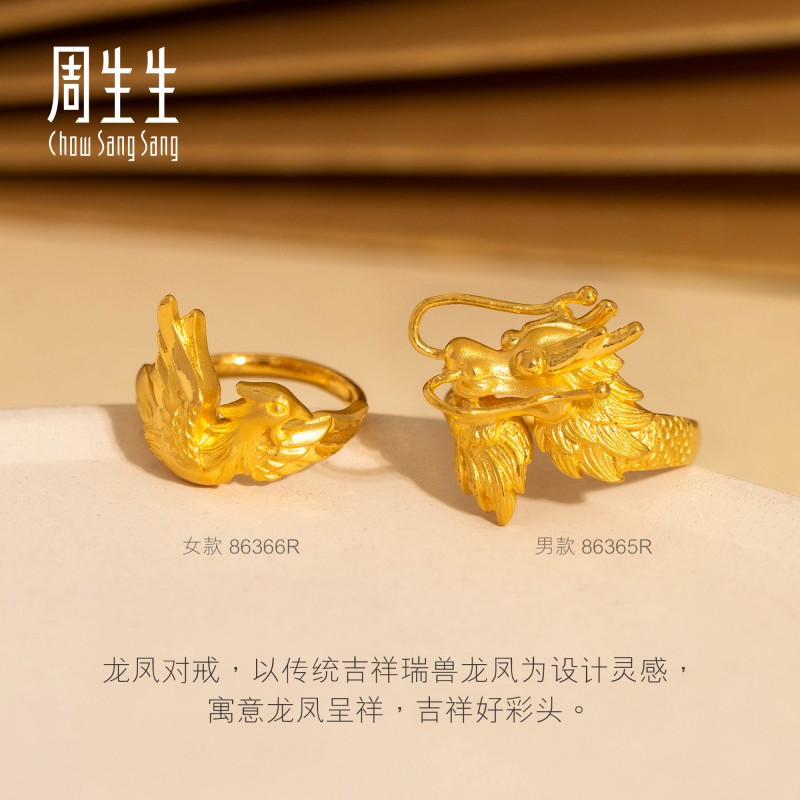 周生生足金生生有囍龙戒指黄金婚嫁结婚男戒开口戒86365R