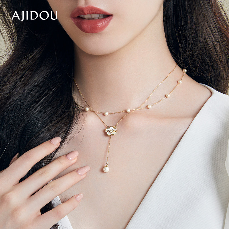 AJIDOU阿吉豆项链女山茶花双层珍珠项链轻奢锁骨链配饰爆款毛衣链