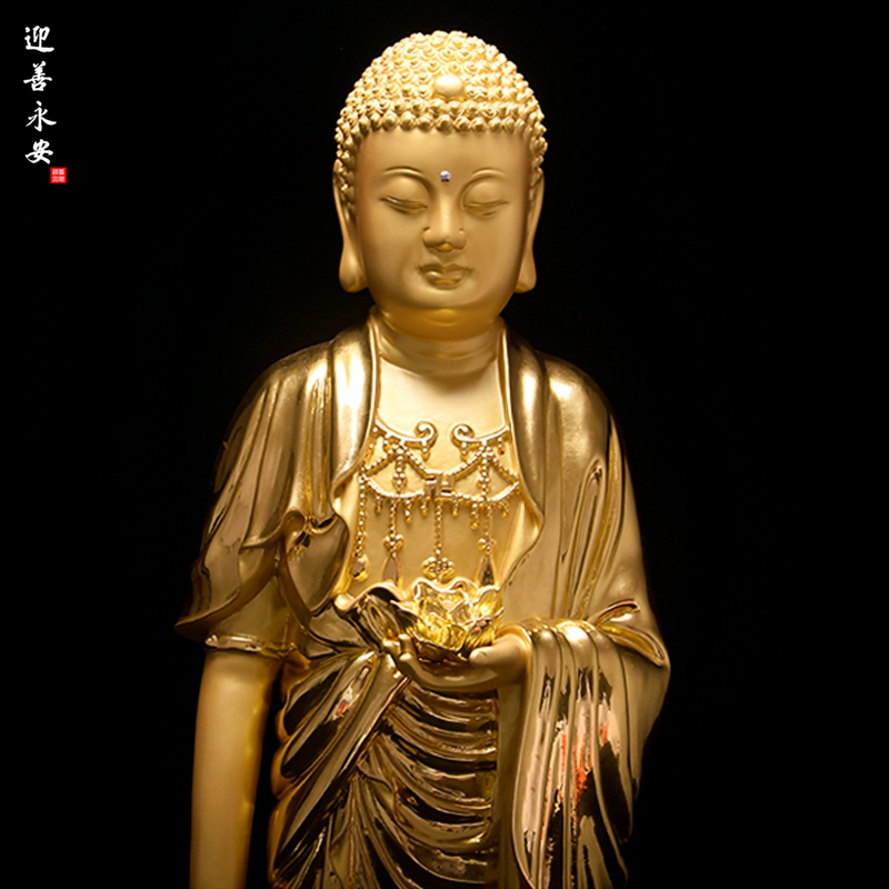 西方三圣阿弥陀佛佛像纯手工家居摆件贴金工艺可定制金身摆设佛堂