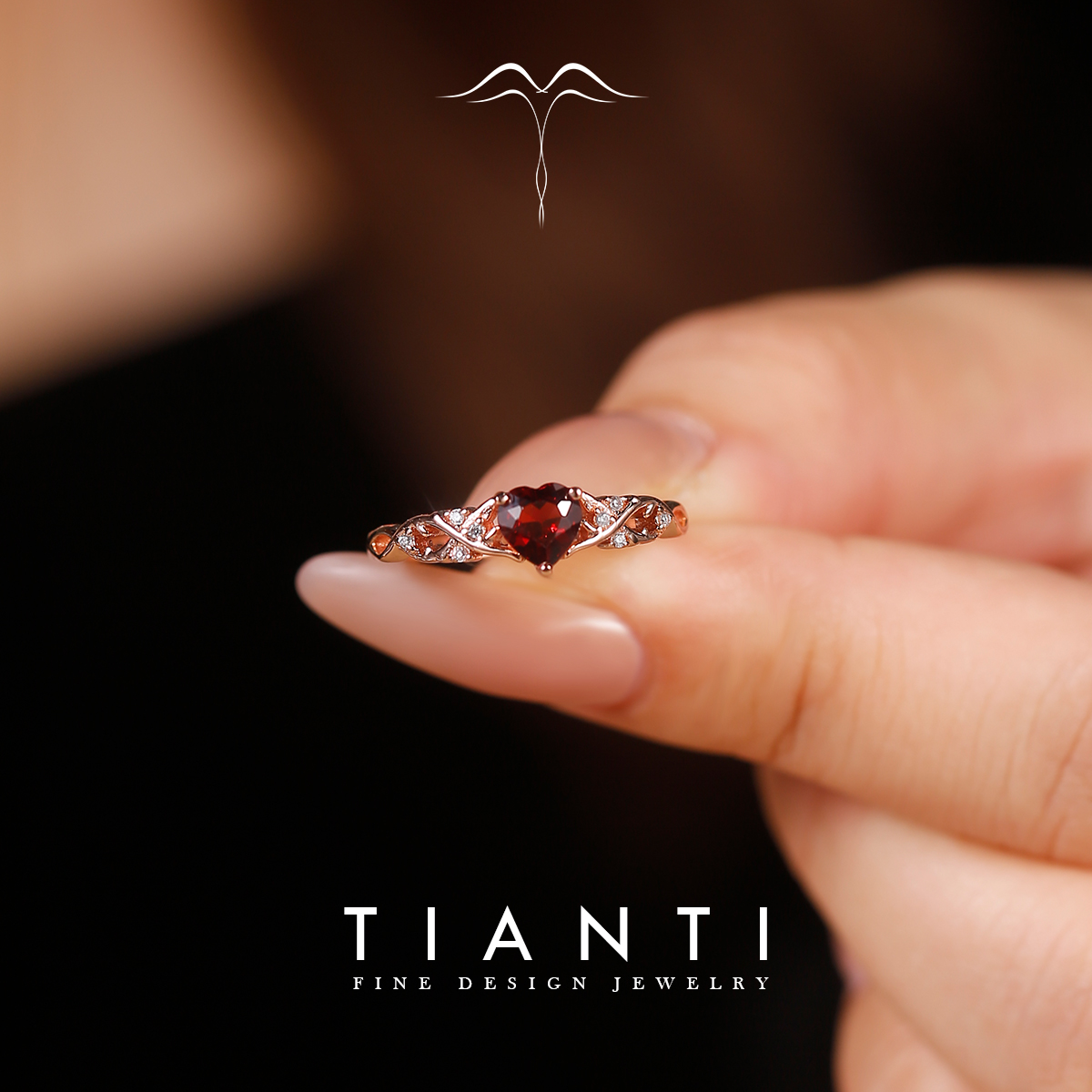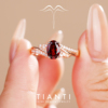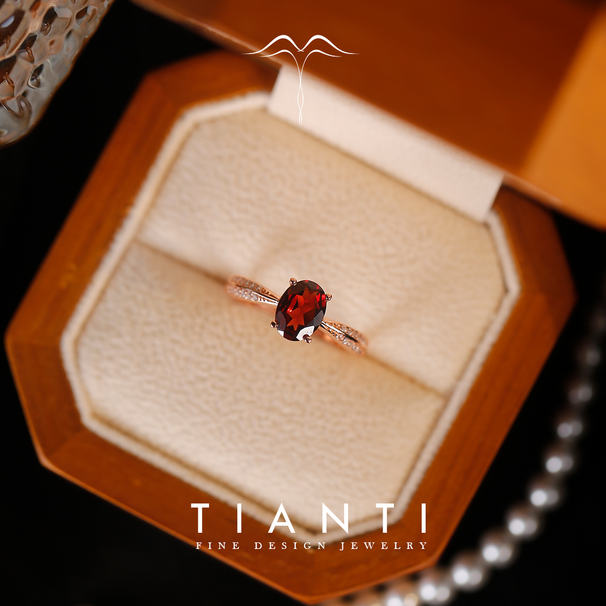天然红石榴石宝石戒指S925纯银镀18K金简约复古活口环送女友礼物