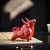 股票吉祥物牛气冲天陶瓷红色牛摆件招财家居客厅博古风水架装饰品
