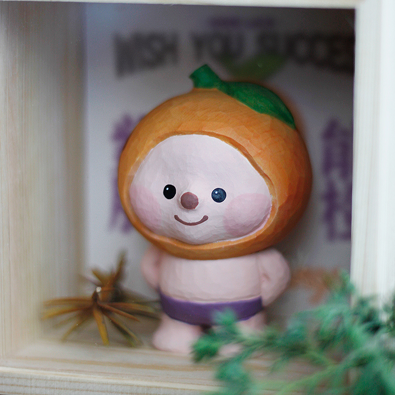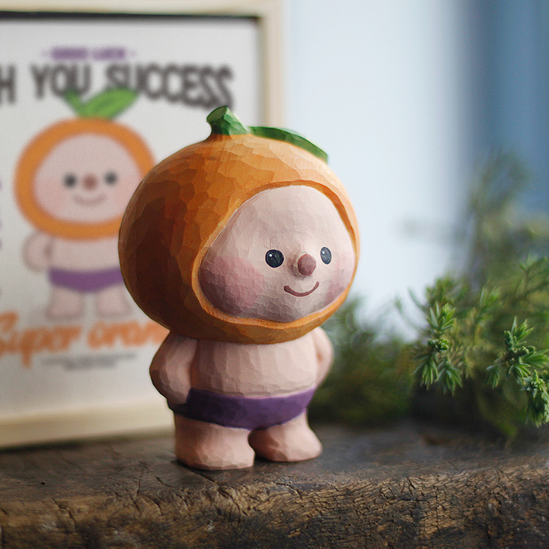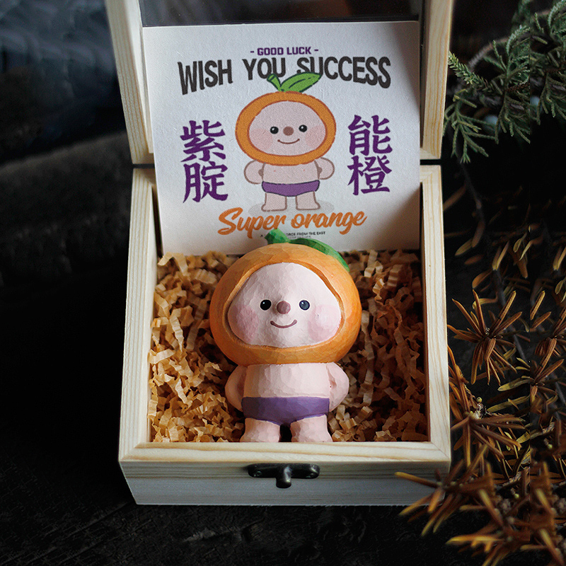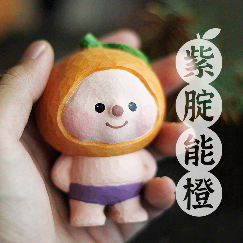 鹿妖商店 紫腚能橙 可爱橙子 纯手工木雕 实木桌面摆件 上岸礼物