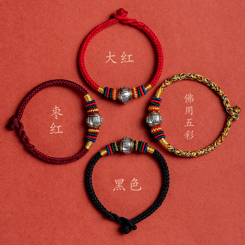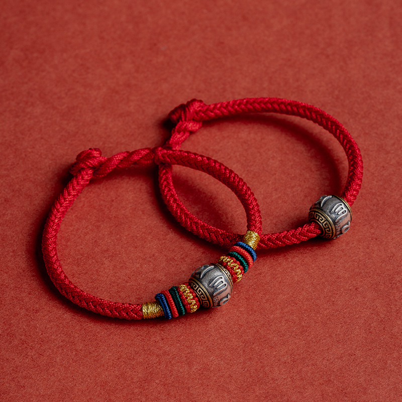 一念纯银六字真言平安红手绳手工H编织绳转运珠男女情侣手链