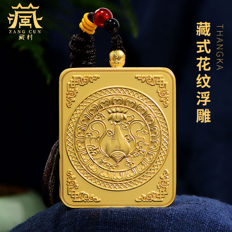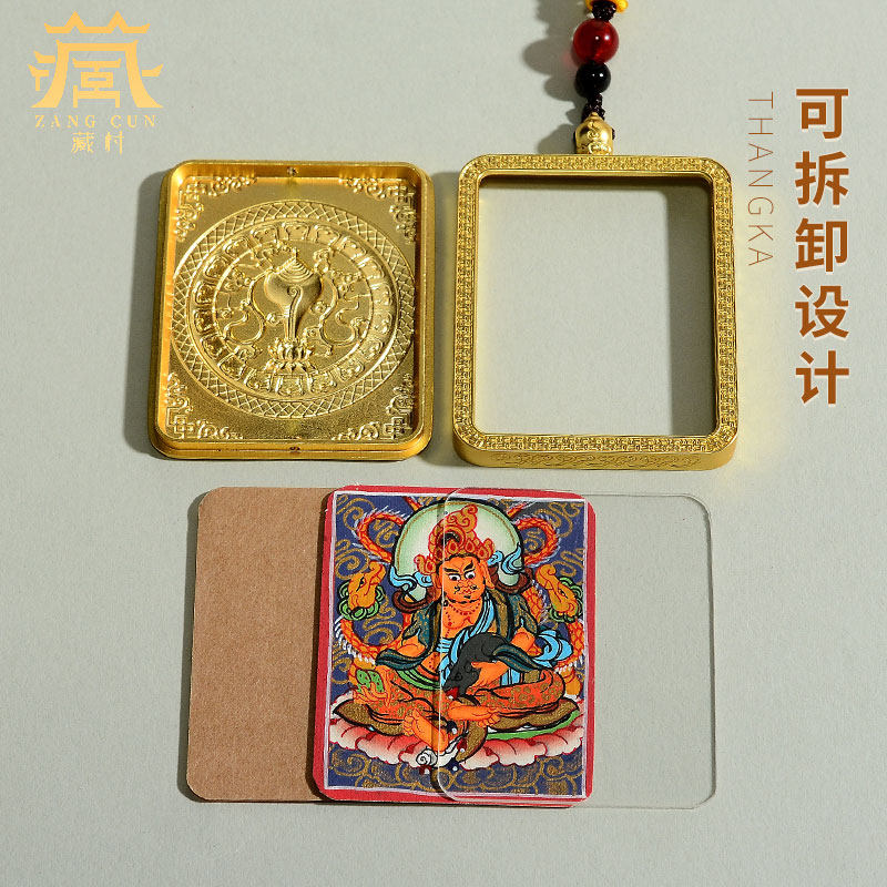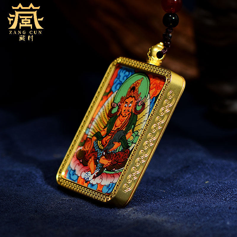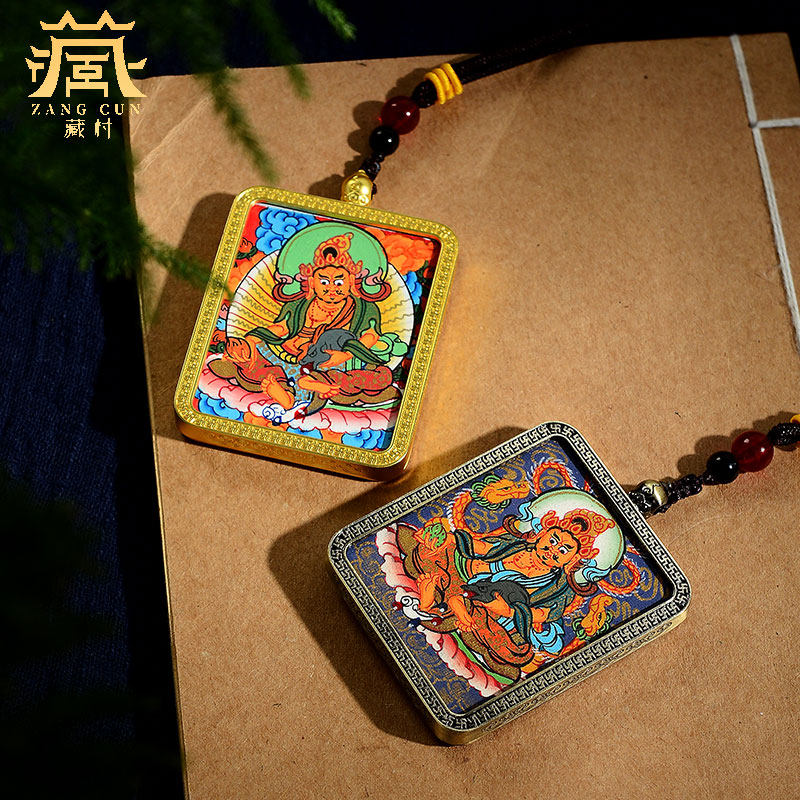 西藏黄财神手绘小唐卡吊坠 五路财神画像挂牌男女随身装饰品项链