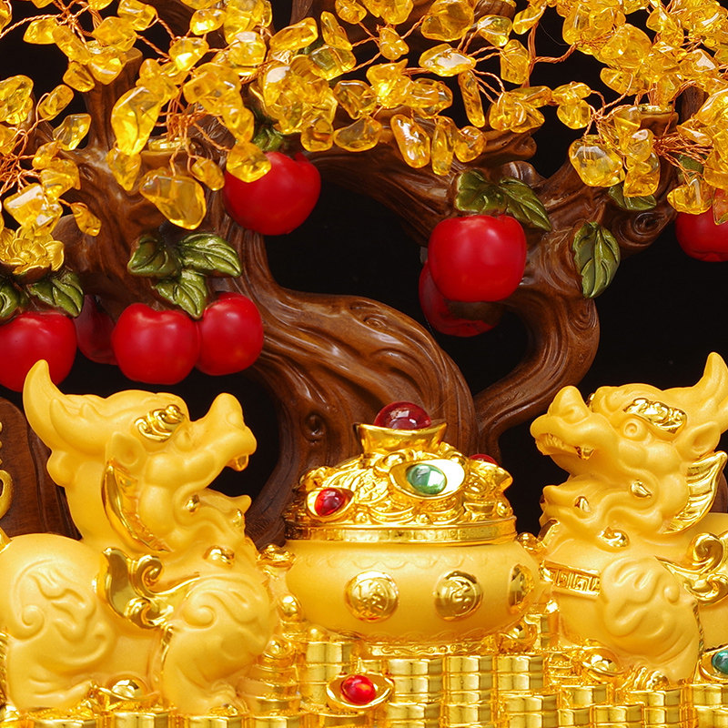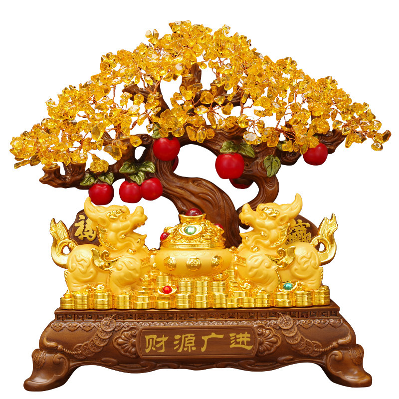 黄水晶发财树招财貔貅一对摆件客厅电视柜酒柜博古乔迁开业礼品