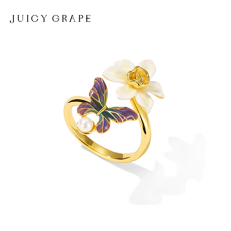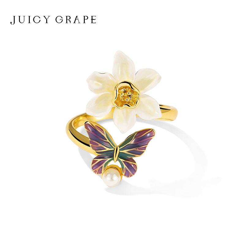 彩色蝴蝶花朵珐琅开口戒指女款设计小众轻奢高级感食指戒指环饰品