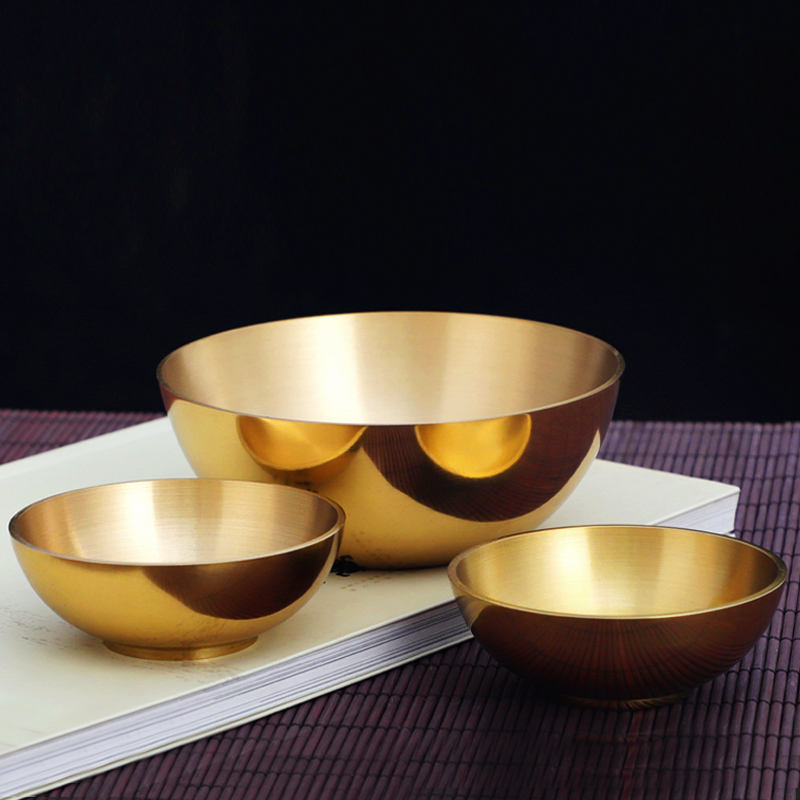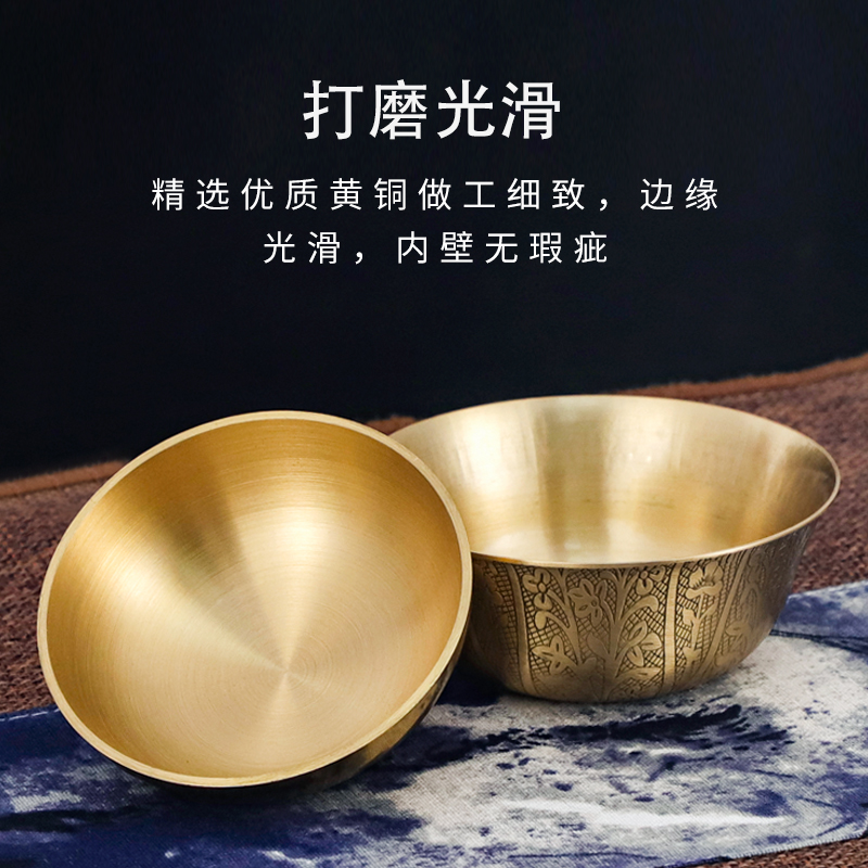 纯黄铜加厚铜碗金碗摆件佛前供水器具供水碗净水杯家居风水桌面