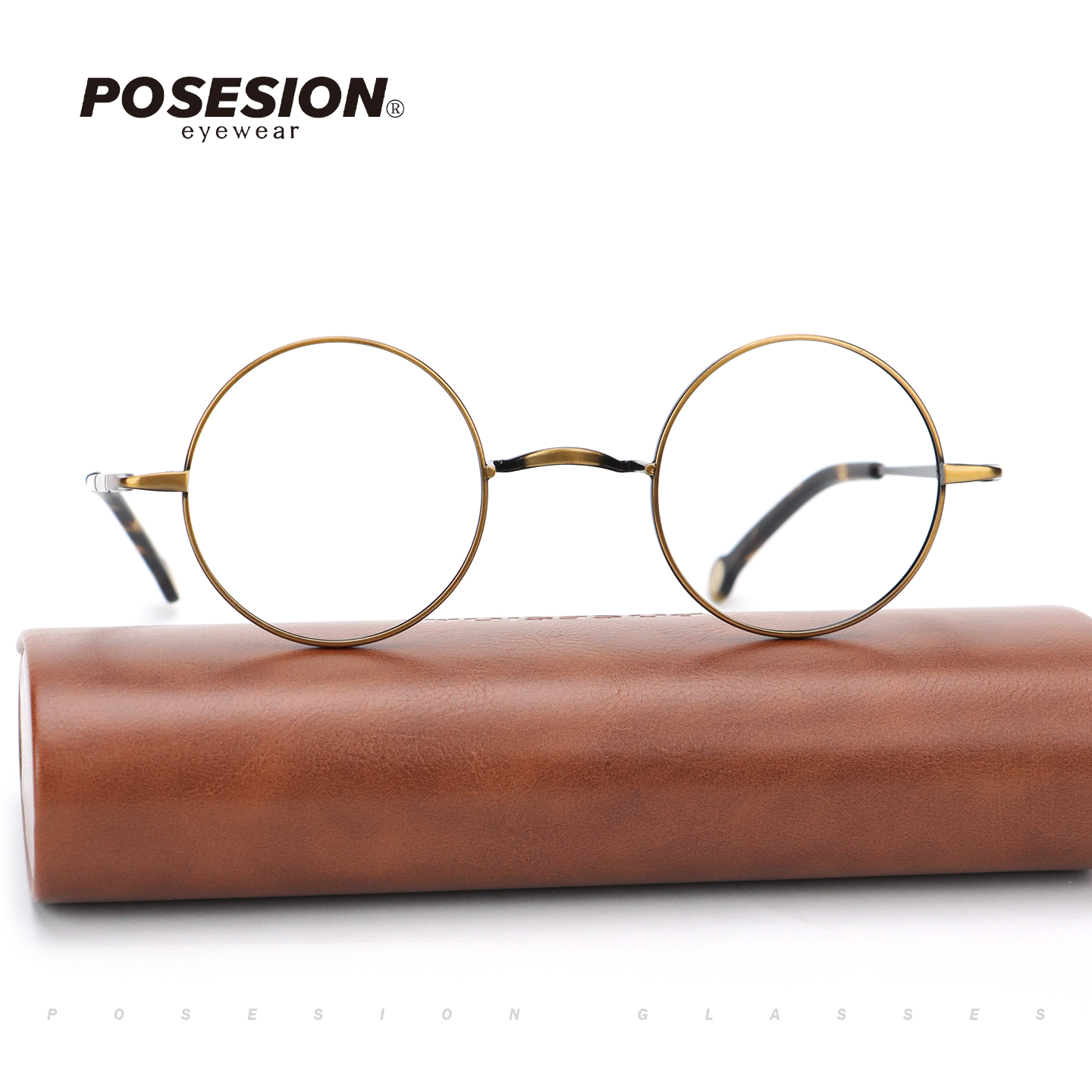 POSESION日系斯文复古圆形眼镜框小圆框金属眼镜架近视眼睛框男女