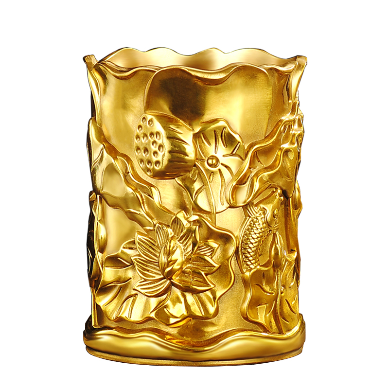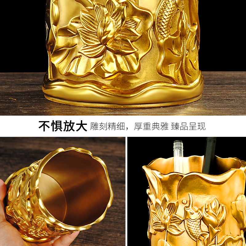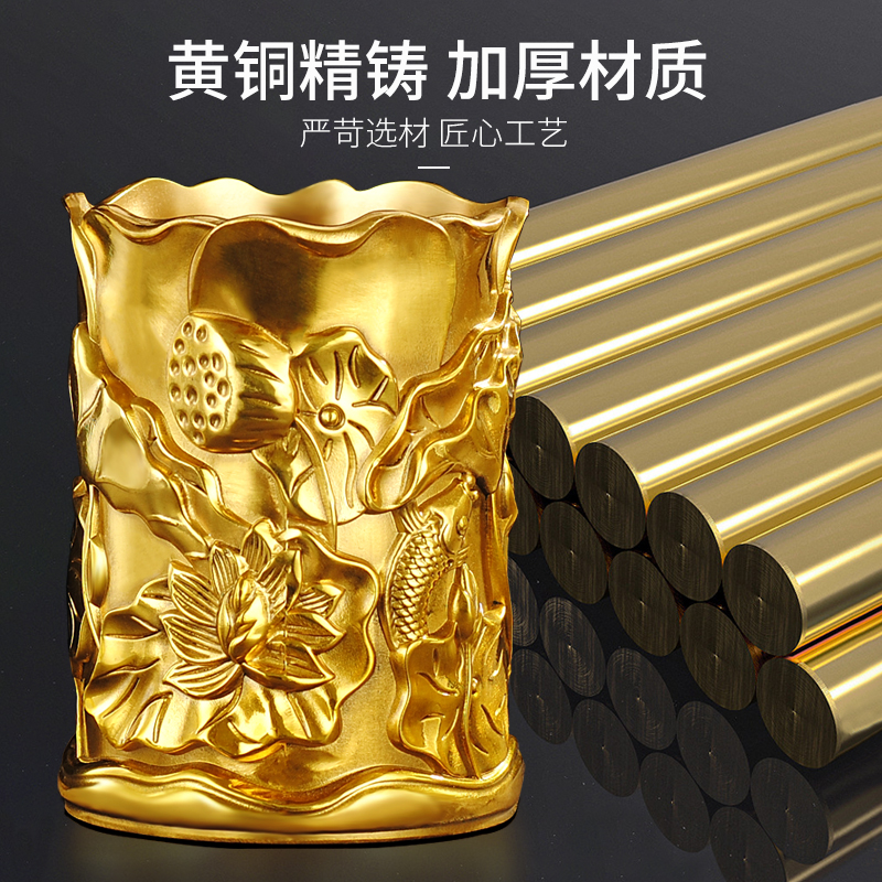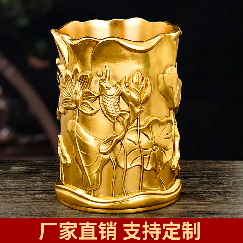 铜连年有余笔筒摆件荷花龙腾四海文房家用办公室送礼学生装饰礼品