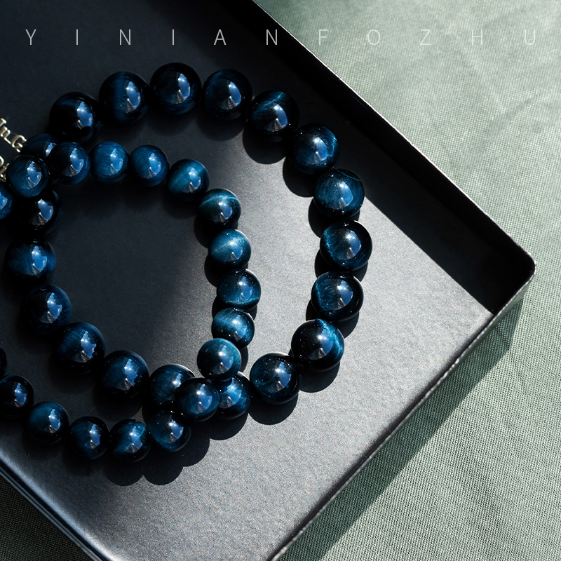 速发超强闪电纹!蓝色星球!南非7A级蓝虎眼石手串男情侣款手链