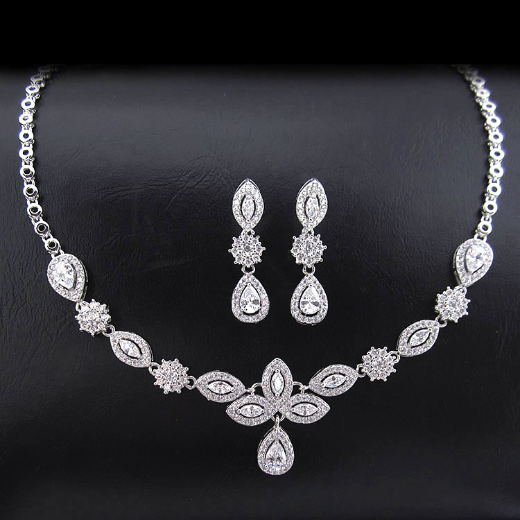 奢华新娘项链耳环套装两件套红色宝石锆石晚礼服仿真珠宝钻石首饰