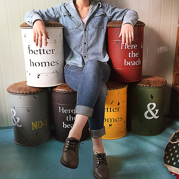 工业风餐厅候餐椅休闲吧凳子网红油桶圆凳子酒吧奶茶店个性软装饰