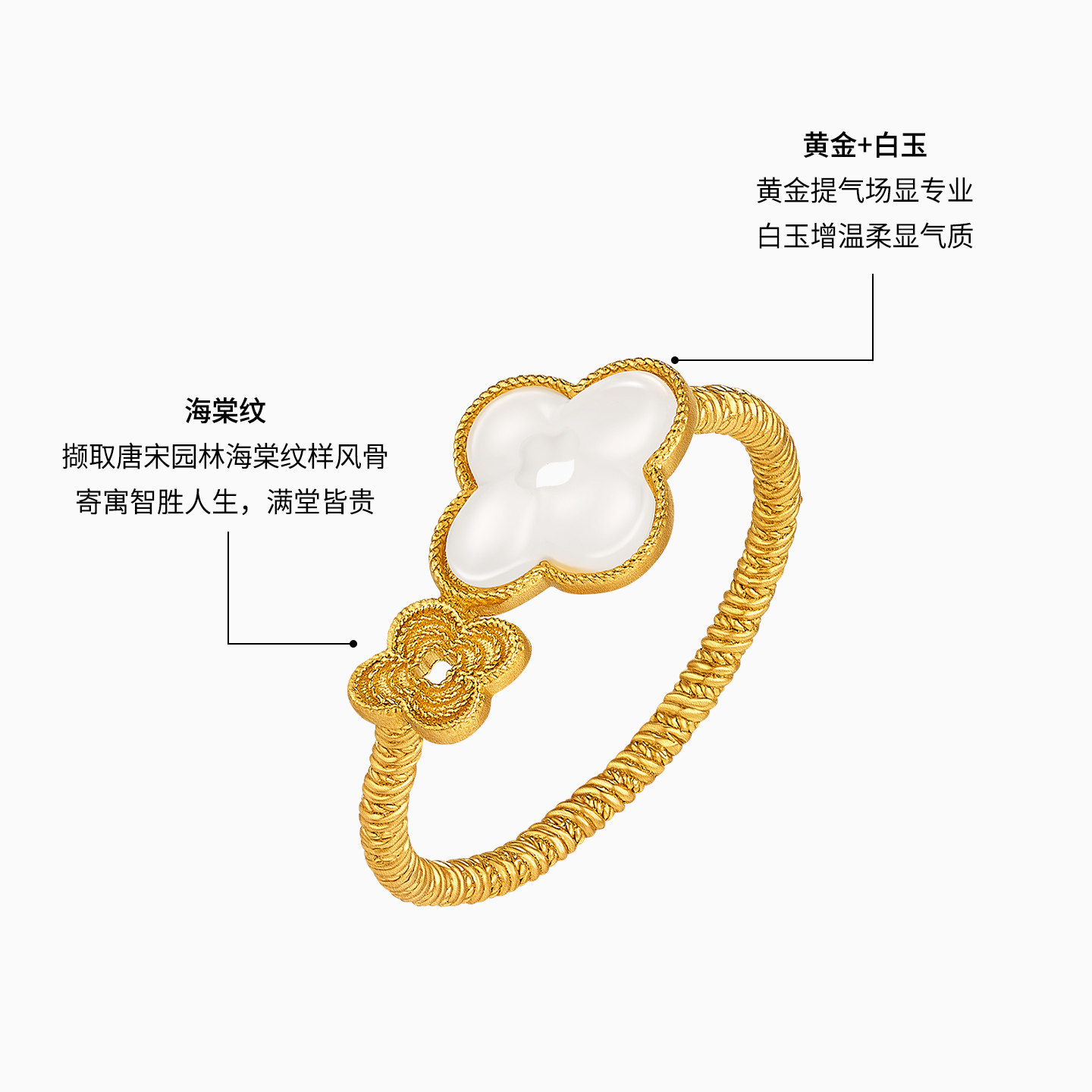 潮宏基非遗花丝海棠黄金戒指5G足金手饰和田玉海棠纹高级感礼物女