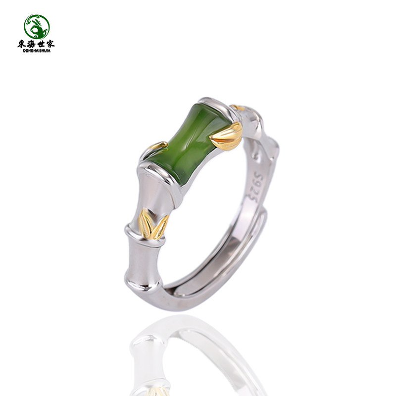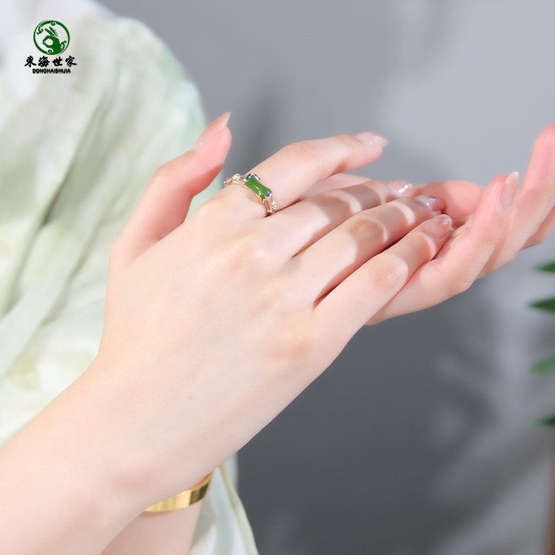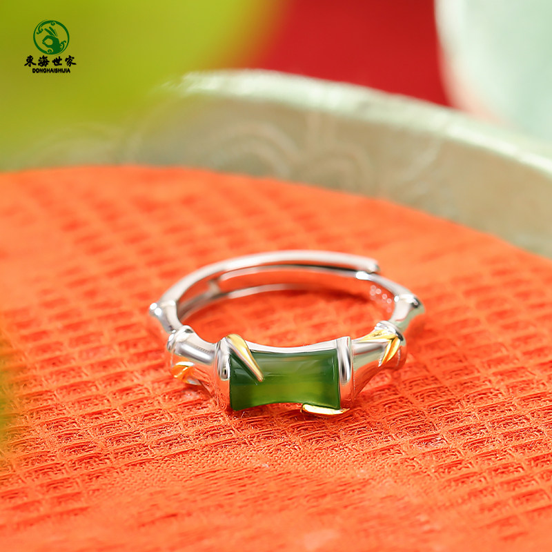 和田玉戒指女东海水晶玛瑙玉髓翡翠绿玉石指环素圈竹节碧玉对尾戒