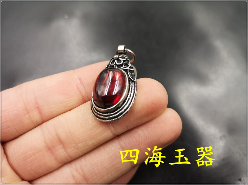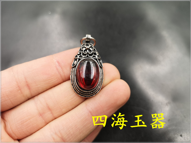 四海玉器 藏式复古红锆石吊坠 蛋形红色玉吊坠 挂件 特价