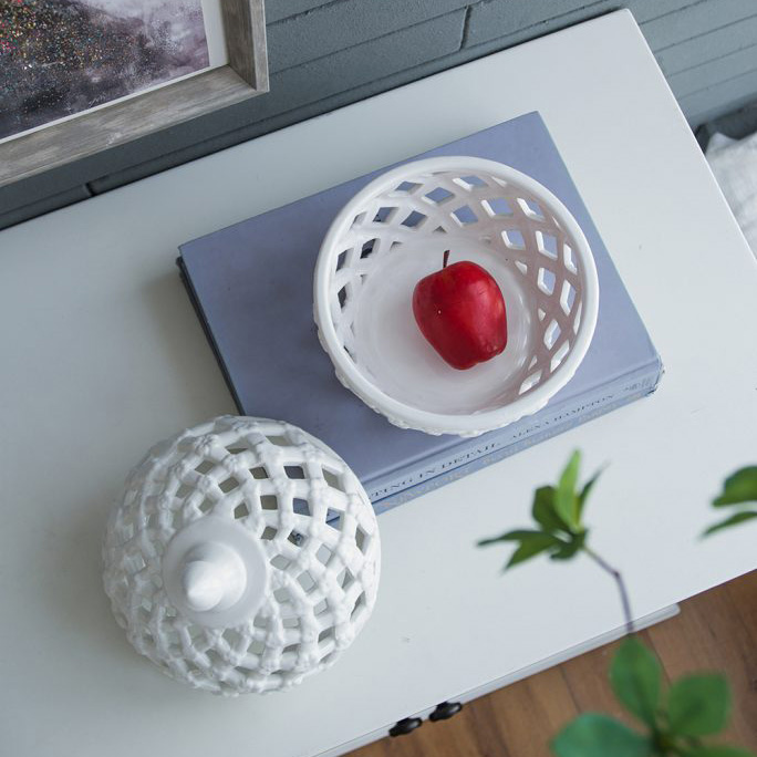 BJ63 白色镂空陶瓷储物罐样板间别墅酒店大堂桌面软装装饰摆件