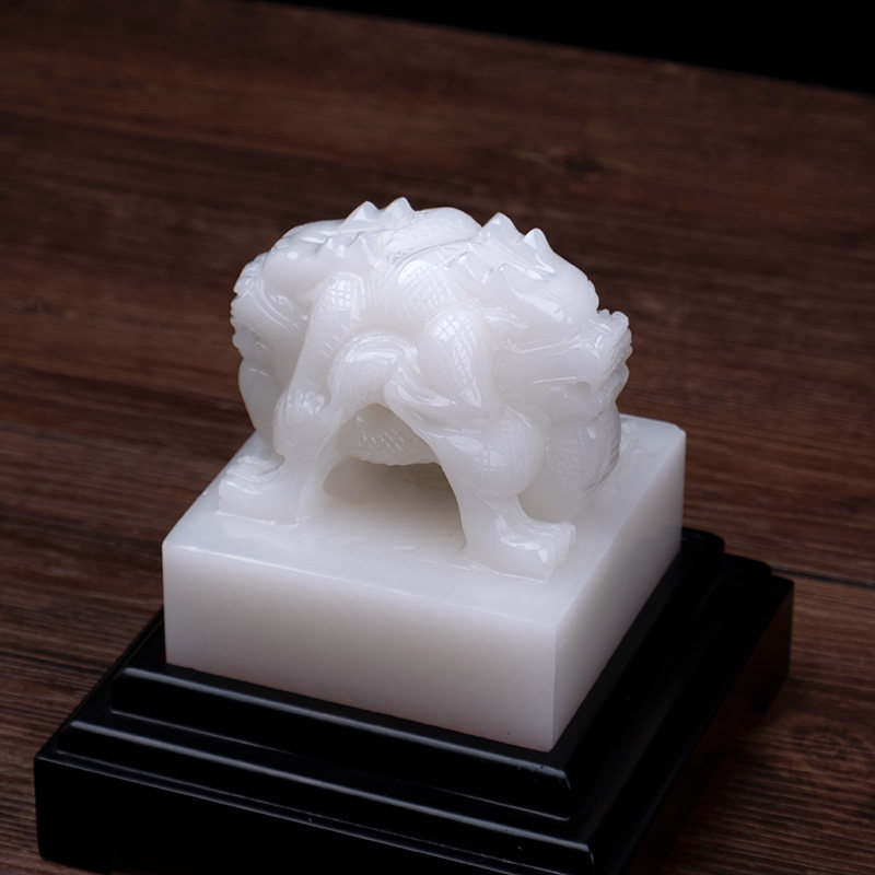 天然玉石传国玉玺双龙钮仿古大号双龙头印章篆刻乾隆宝玺礼品摆件