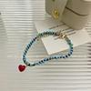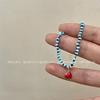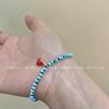 小清新蓝色串珠红色爱心手链夏日潮流手串小众设计感个性甜美气质