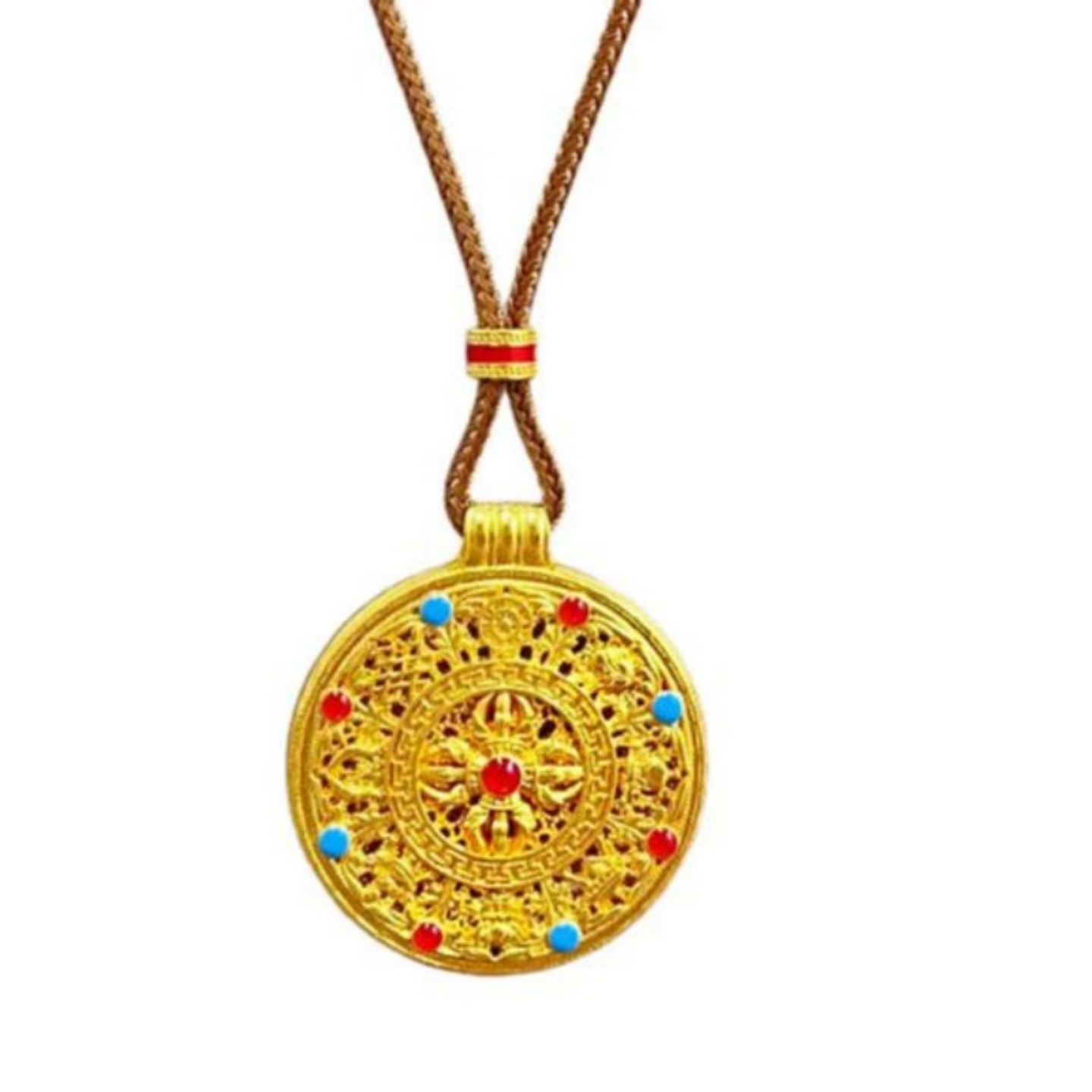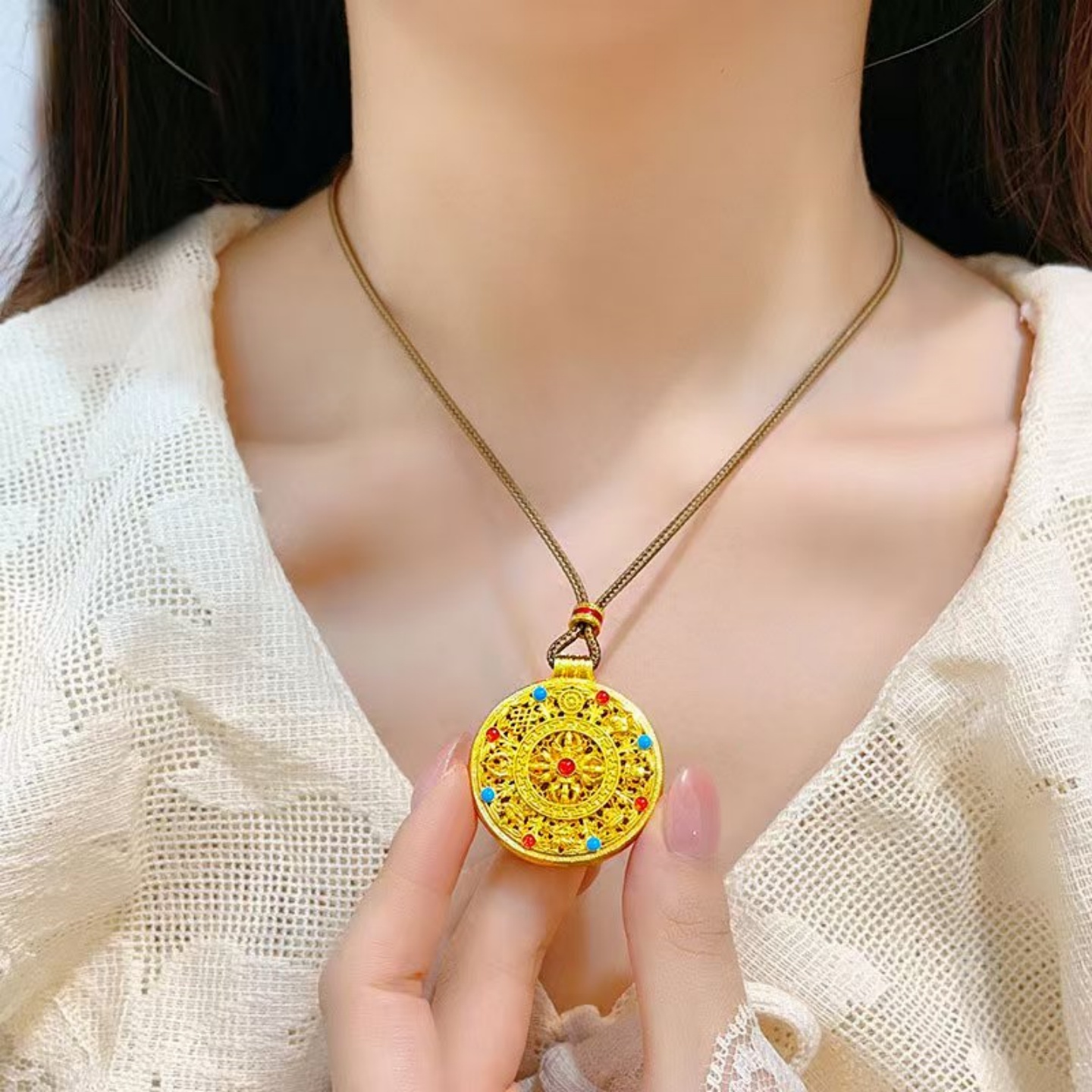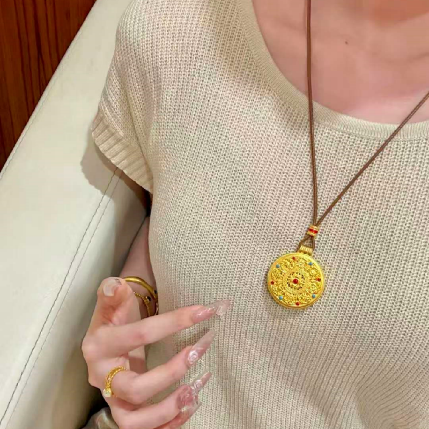 金包银珐琅八宝罗盘吊坠女镂空金刚杵吉祥圆牌绳挂坠锁骨毛衣项链