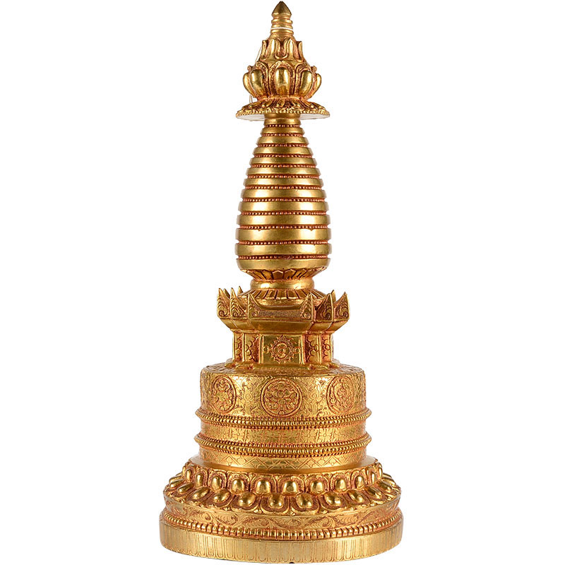 欧斯特 尼泊尔手工噶当塔 铜塔家居客厅宝塔全鎏金菩提塔桌面摆件