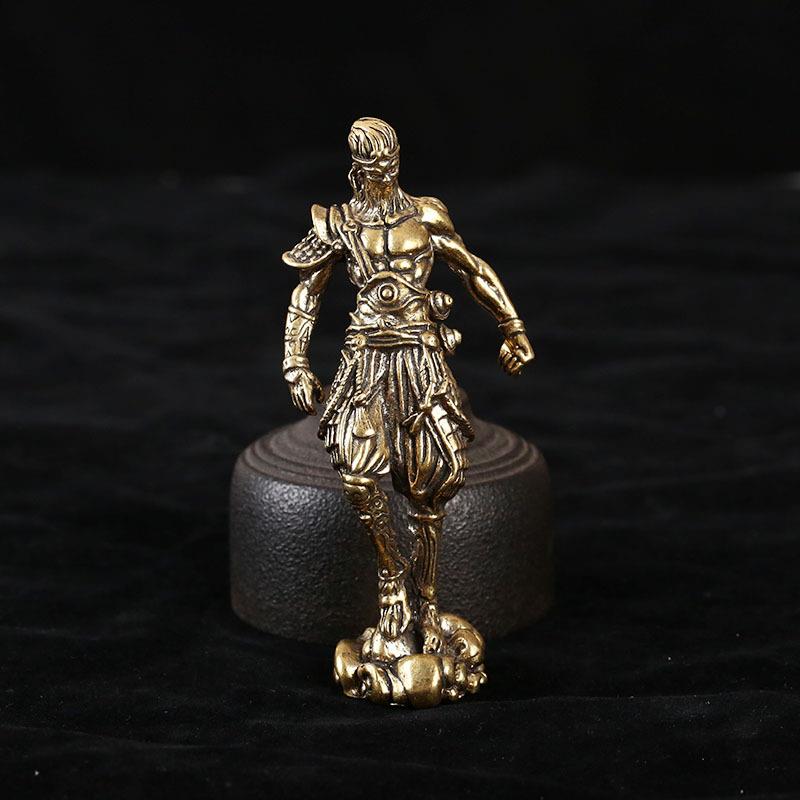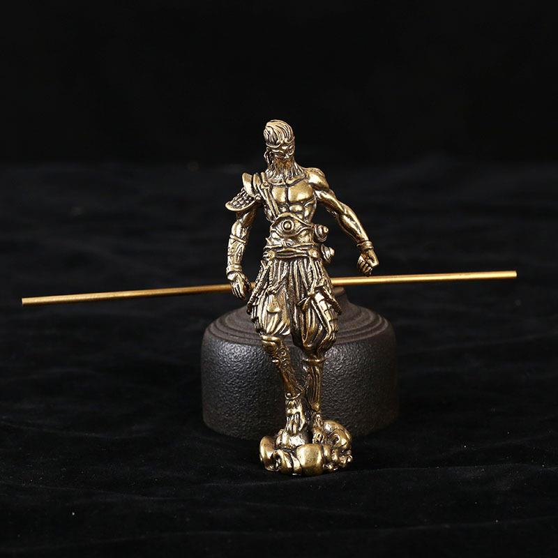 创意实心黄铜斗战胜佛齐天大圣摆件桌面茶宠文镇纸摆饰金箍棒可拆