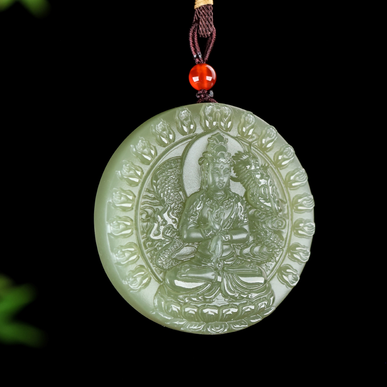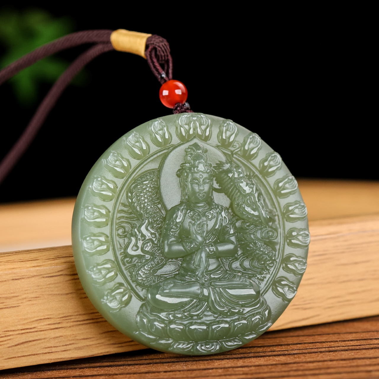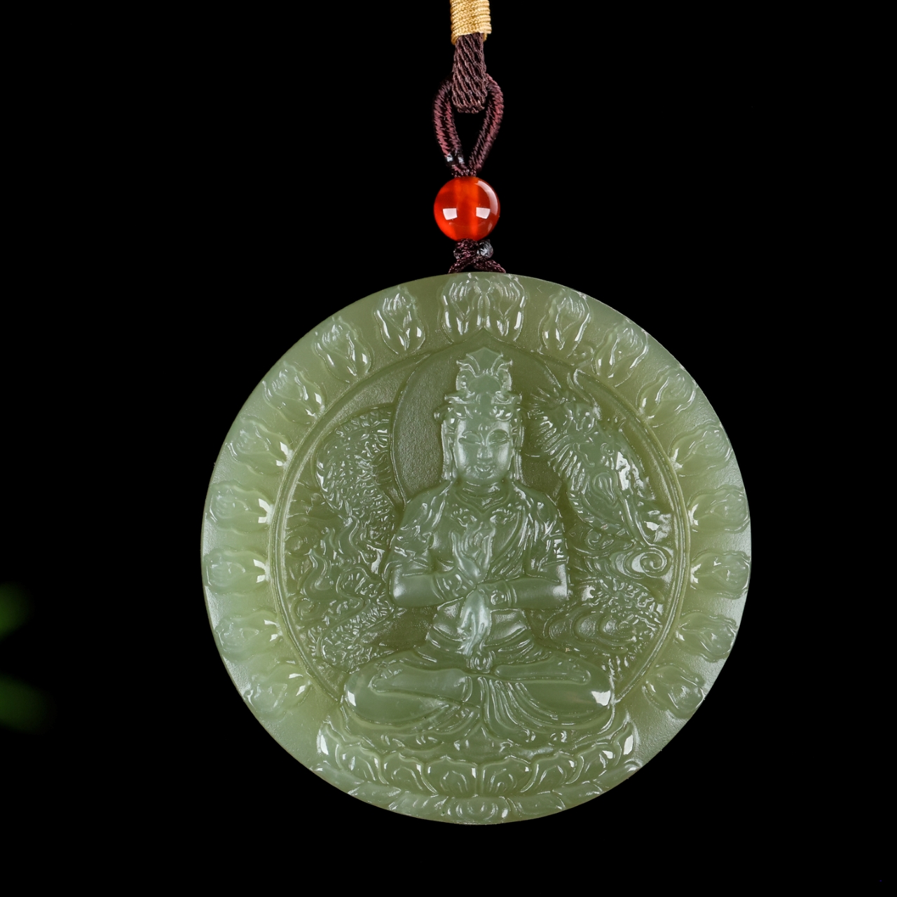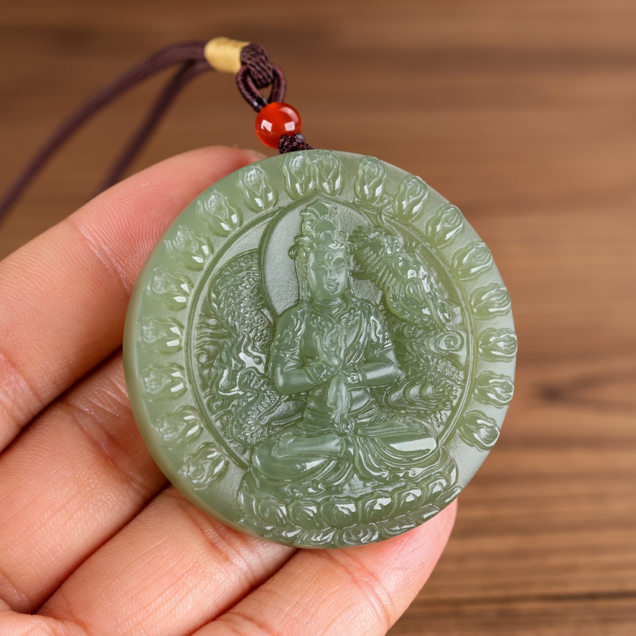 天然和田玉湖水绿千手观音吊坠男女款玉石挂件圆形雕刻工艺品项链