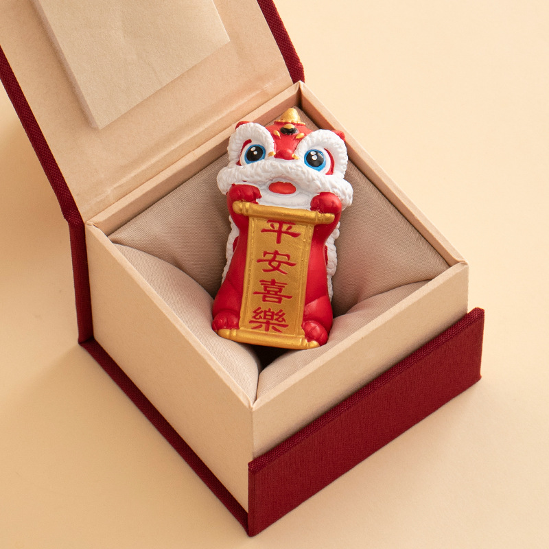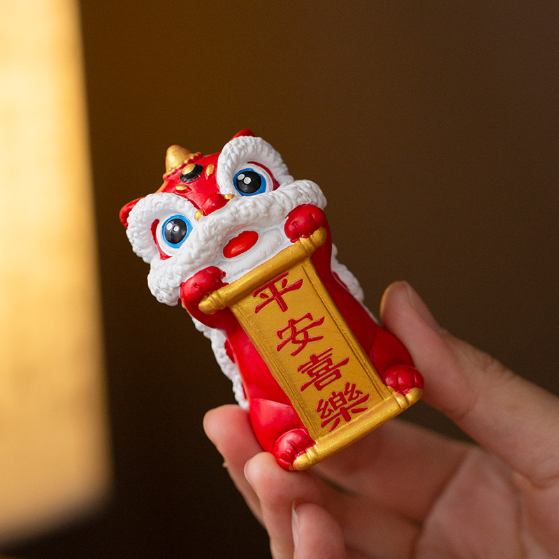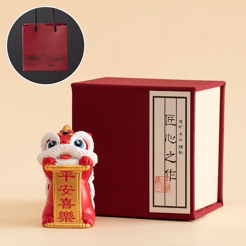 中国风平安喜乐醒狮小摆件桌面装饰品创意佛山文创石狮子生日礼物