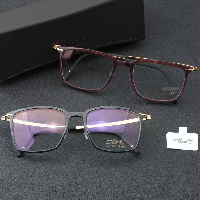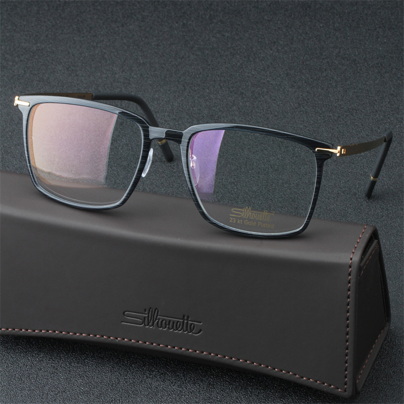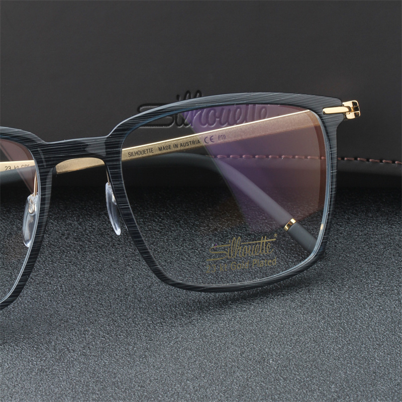 Silhouette诗乐勋球眼镜架全框男士大框方形近视眼镜23K镀金L013
