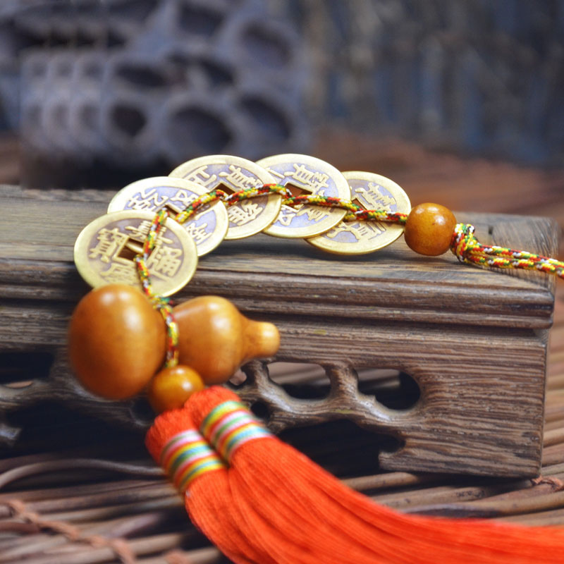 真纯铜五帝钱六十招财葫芦钥匙扣压门槛家用挂件铜钱