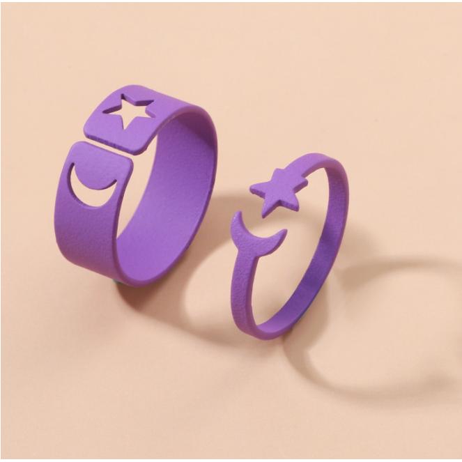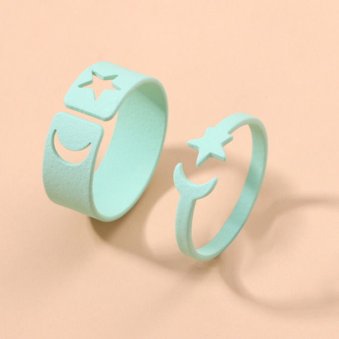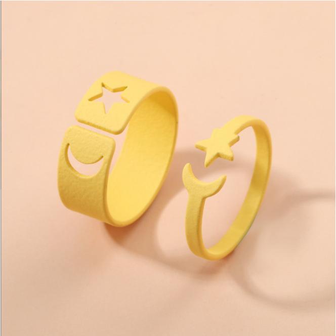 ins新款日韩风浪漫星月戒指 糖果色感星星月亮开口指环套装