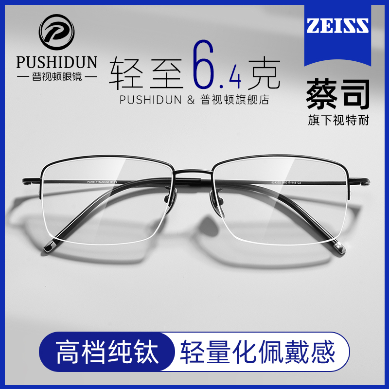 超轻纯钛近视眼镜男可配度数专业网上配镜片变色大脸宽半框眼睛架