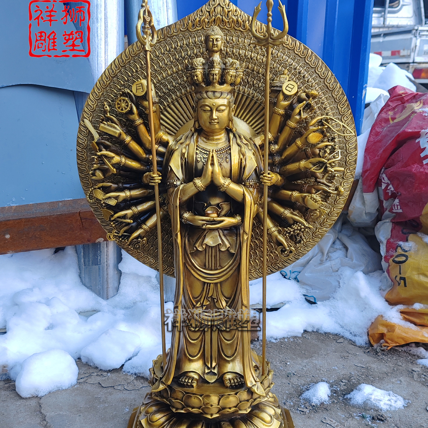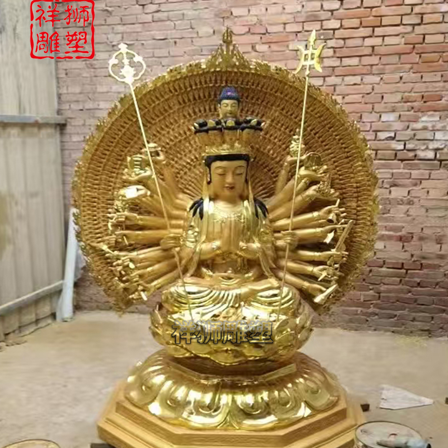 祥狮雕塑铜雕铸造千手观音佛像寺庙供奉摆件批发精工来图定制