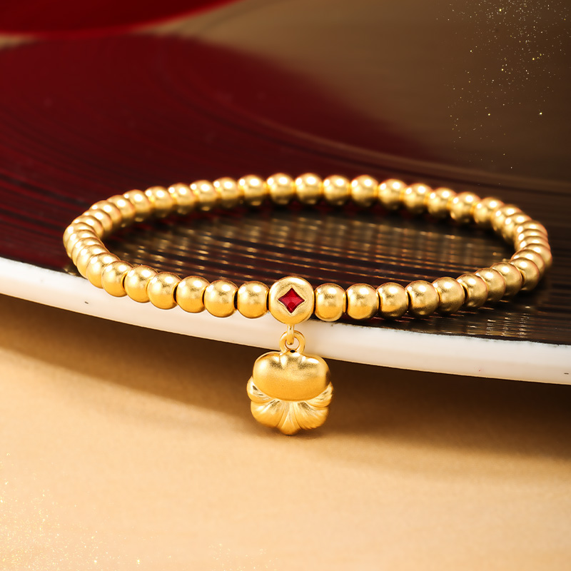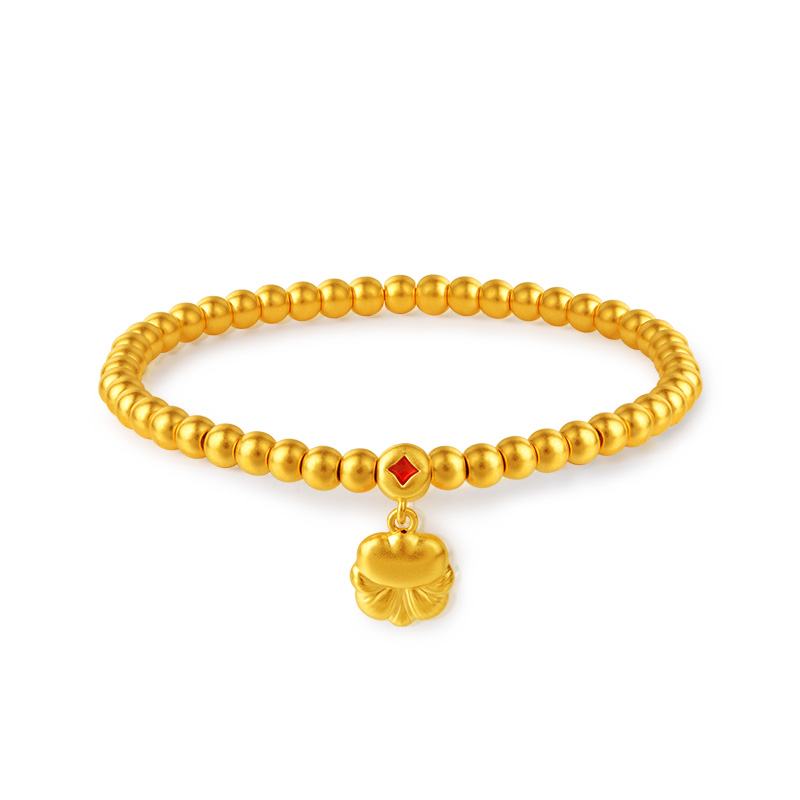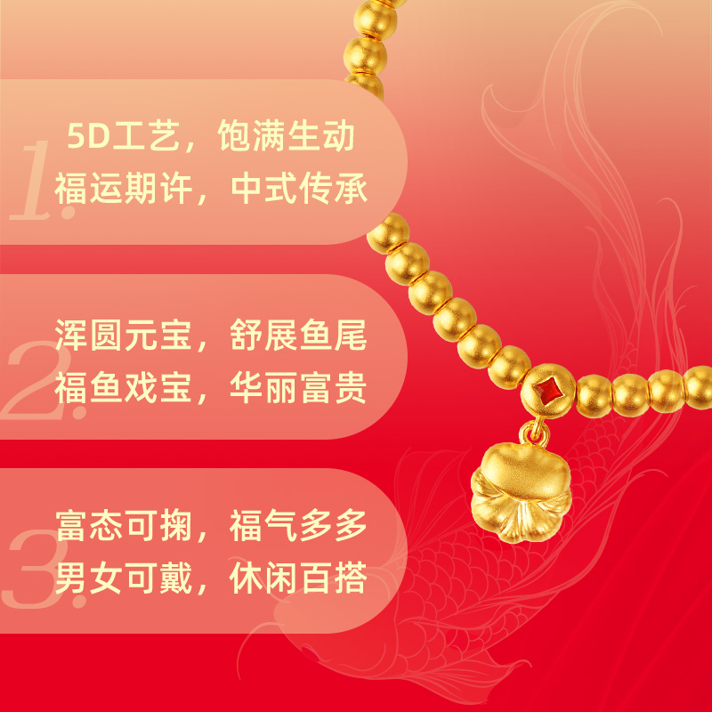 老庙黄金足金5D富富有余元宝福鱼金珠鎏彩低温珐琅手链锦鲤节日礼