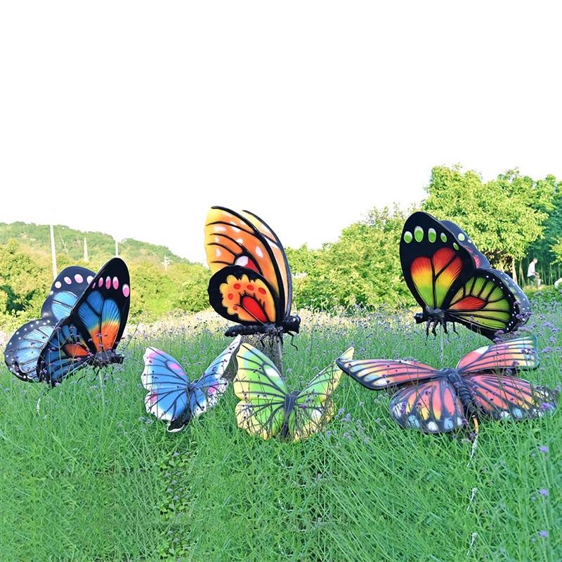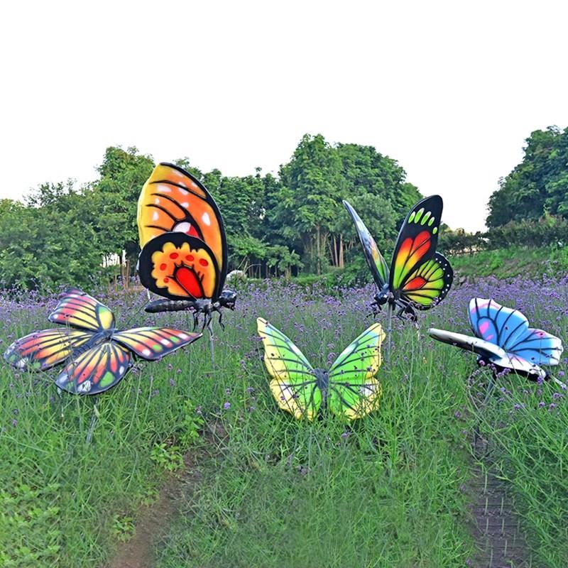 玻璃钢蝴蝶雕塑铁艺插件仿真动物摆件户外花园景观装饰田园摆设