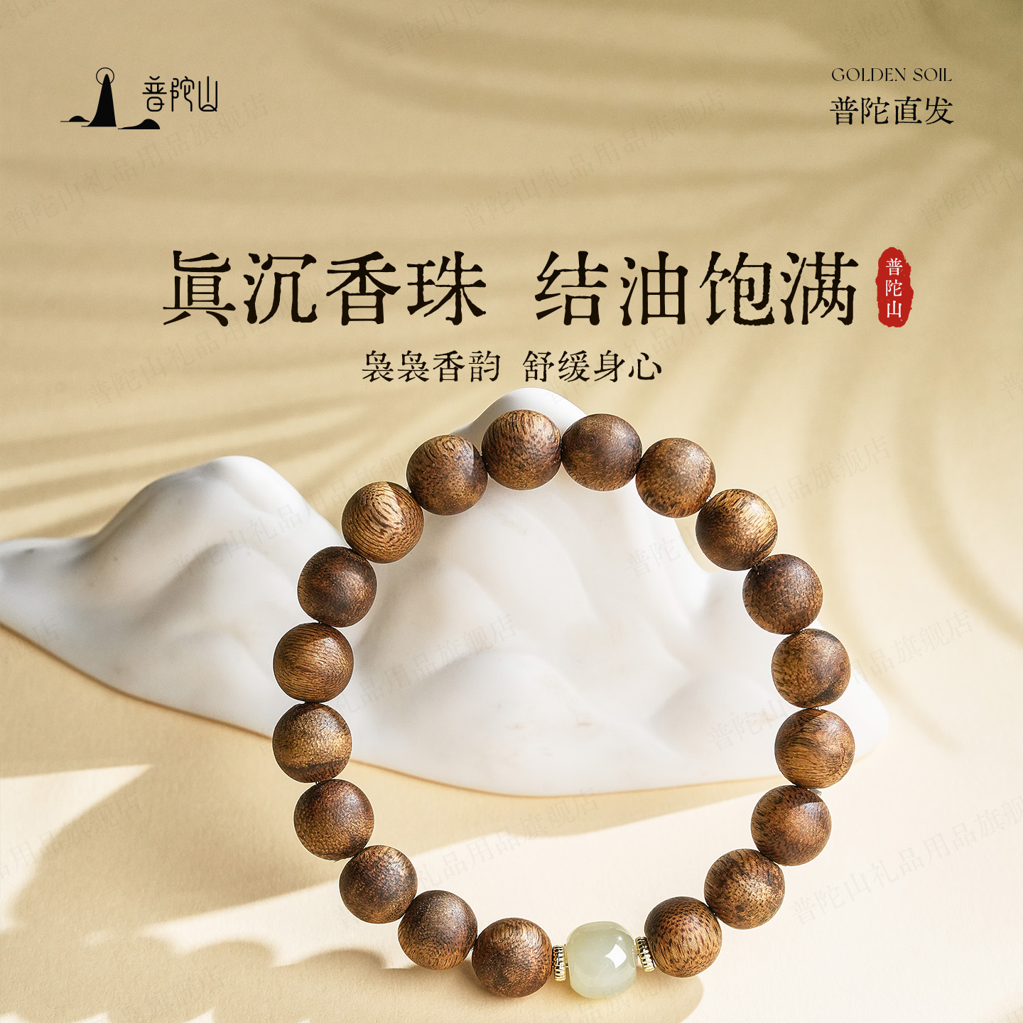 普陀山天然安神沉香手串男女真品和田玉转运珠沉香木佛珠手链礼物