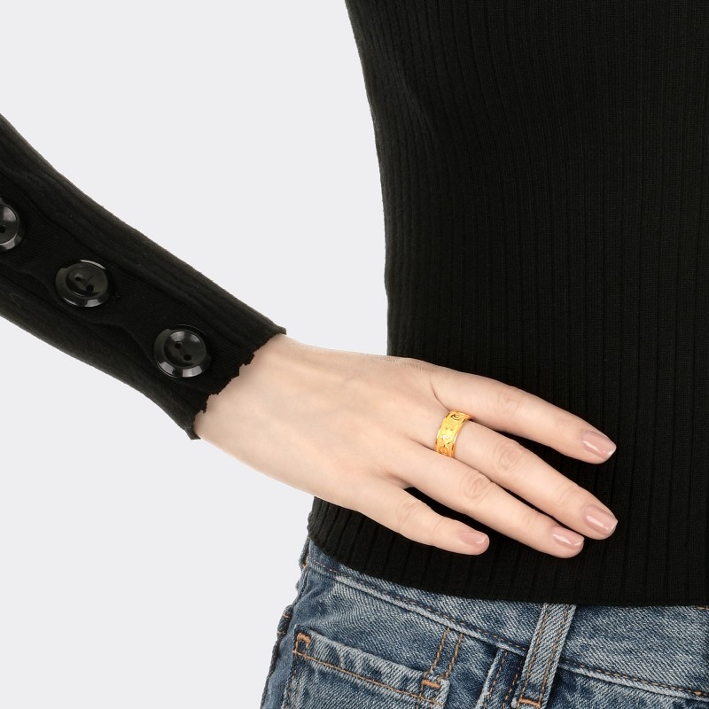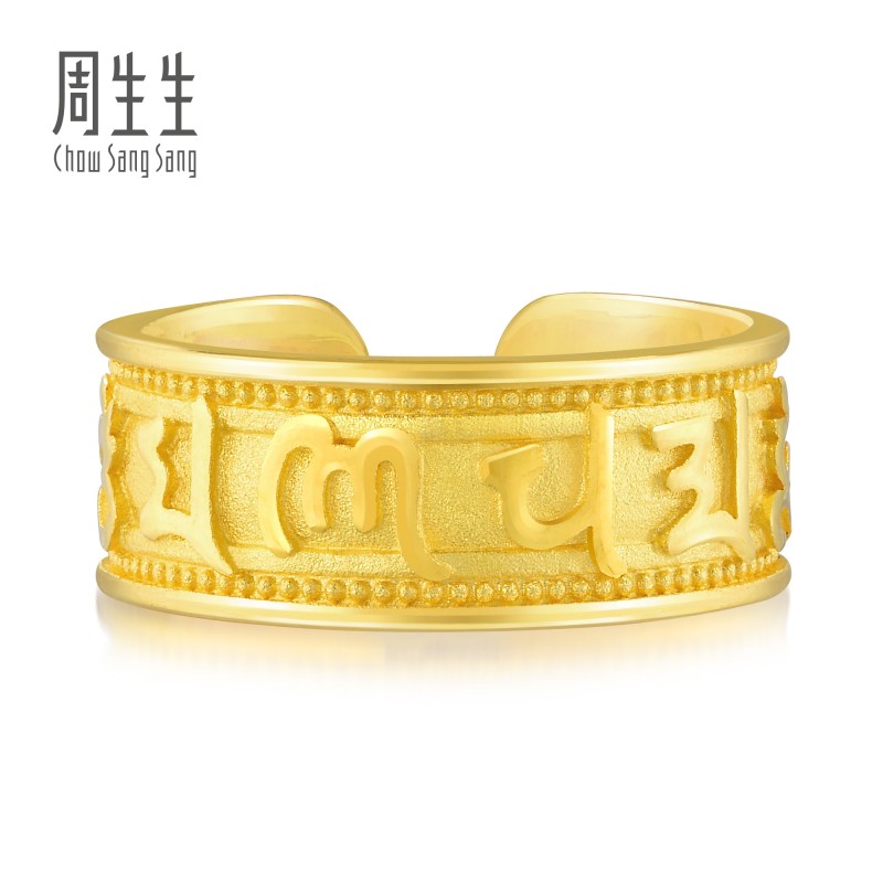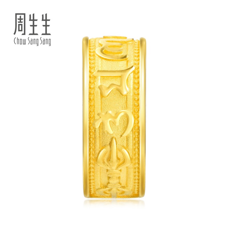 周生生黄金足金文化祝福六字真言戒指男款送长辈90477R