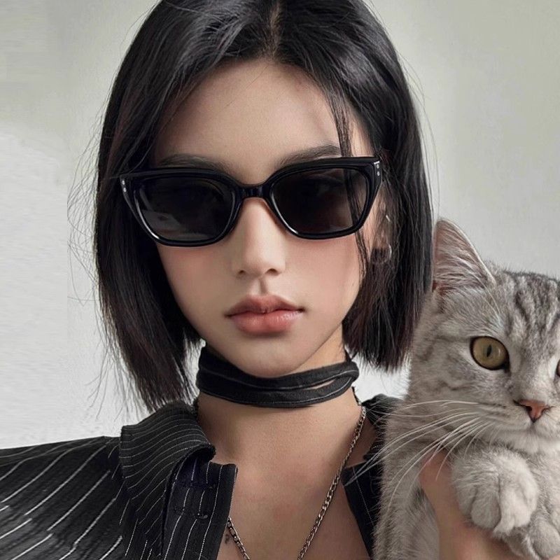 复古猫眼墨镜女款2024新款显瘦方圆脸防晒男高级感小方框太阳眼镜