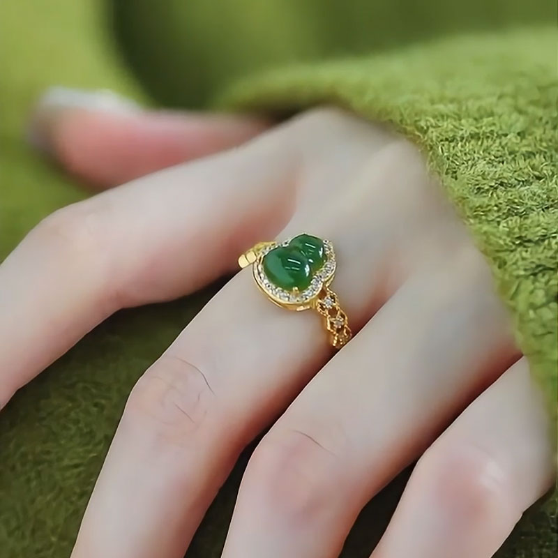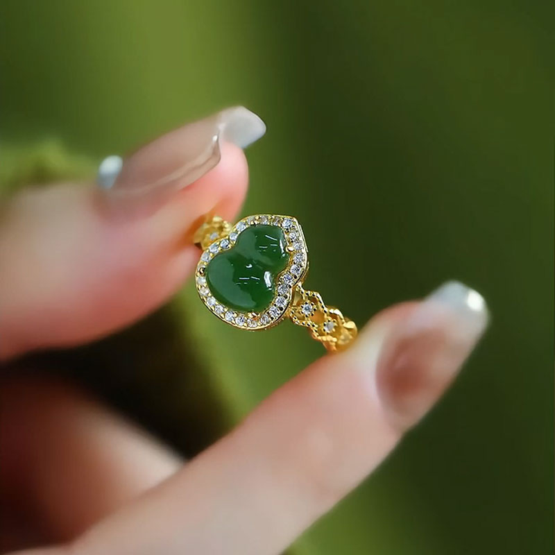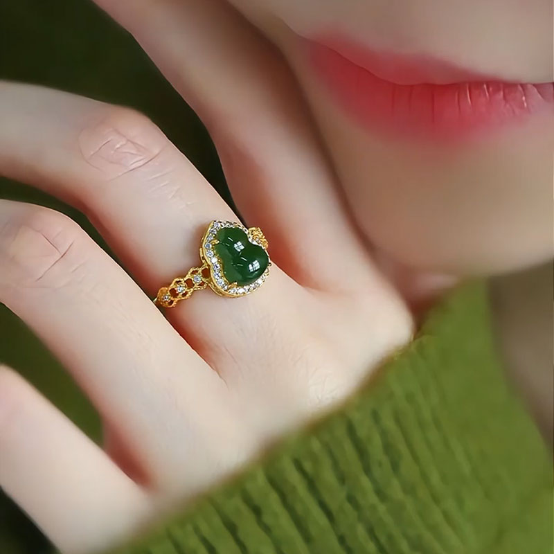 925银福禄葫芦和田碧玉戒指女新中式民族风小众高级感开口食指戒