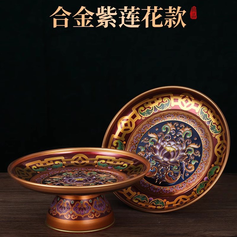 供佛合金果盘佛前供盘家用供奉莲花贡盘观音财神水果盘贡品盘佛具