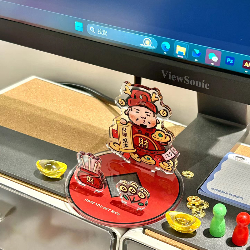 2025新款财神爷立牌财神摆件中式亚克力恭喜发财办公室桌面装饰