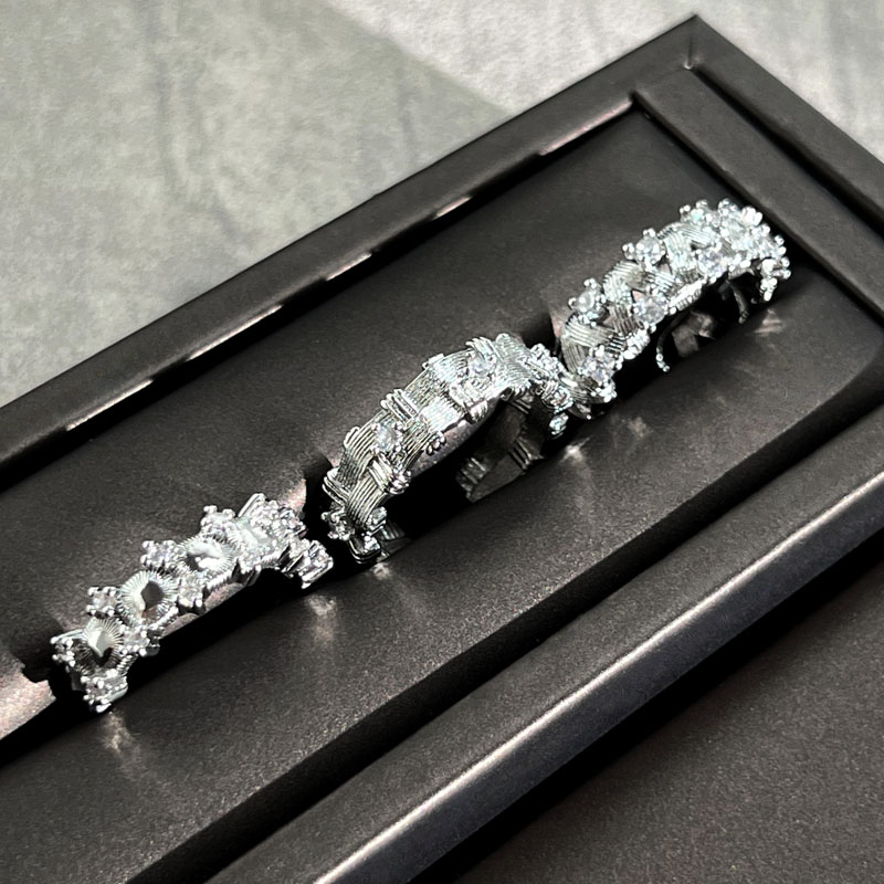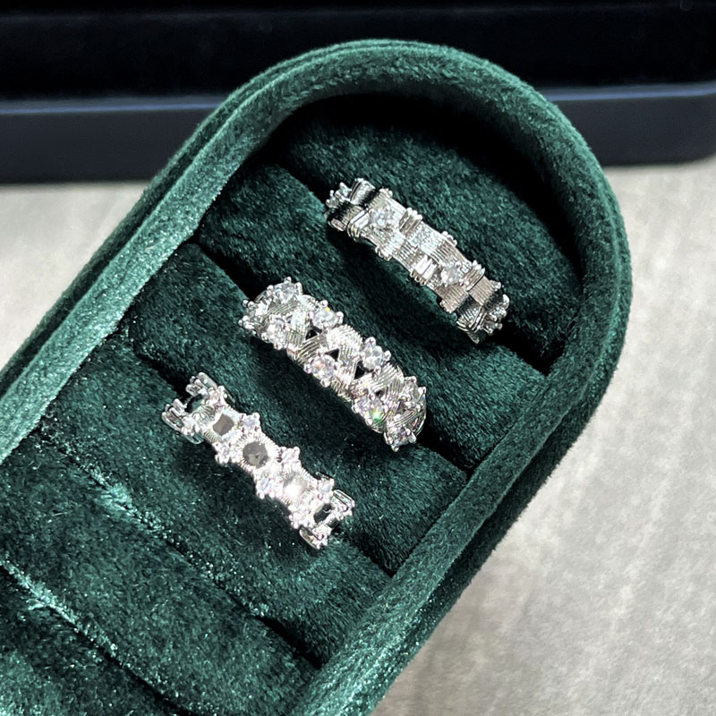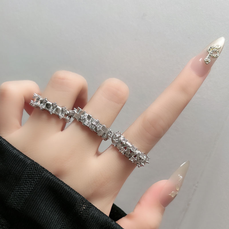 vintage复古蕾丝纹拉丝个性镶嵌戒指女轻奢高级感小众气质指环潮