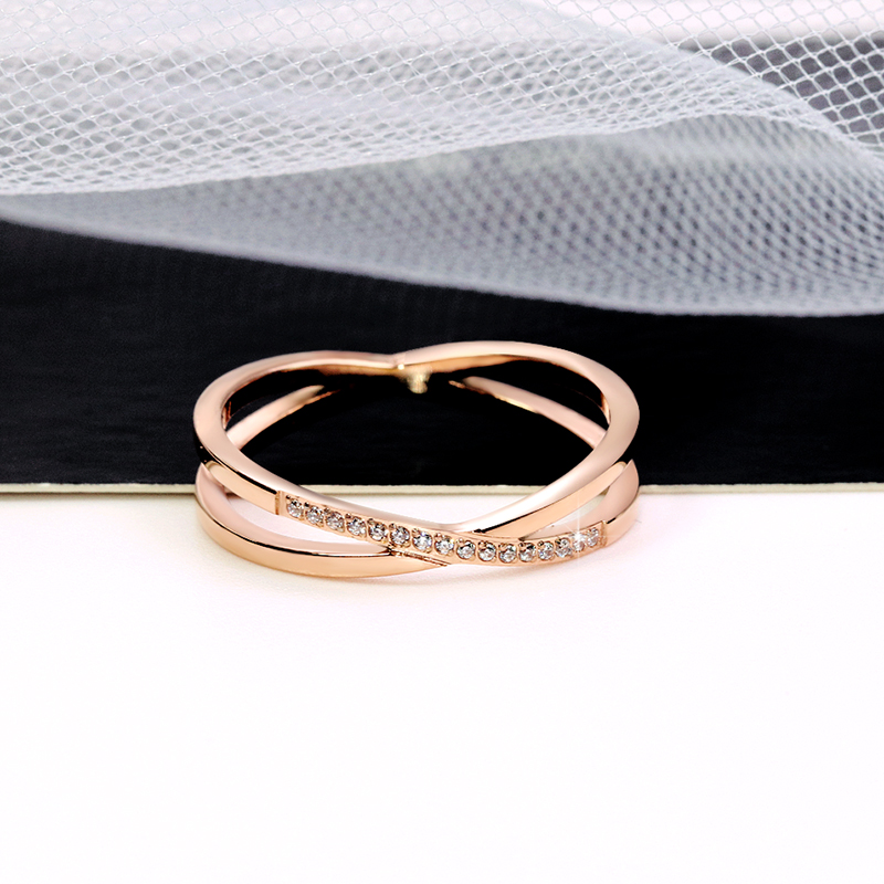 韩版钛钢镀18K玫瑰金闪锆交叉戒指尾戒女食指指环戒子时尚饰品