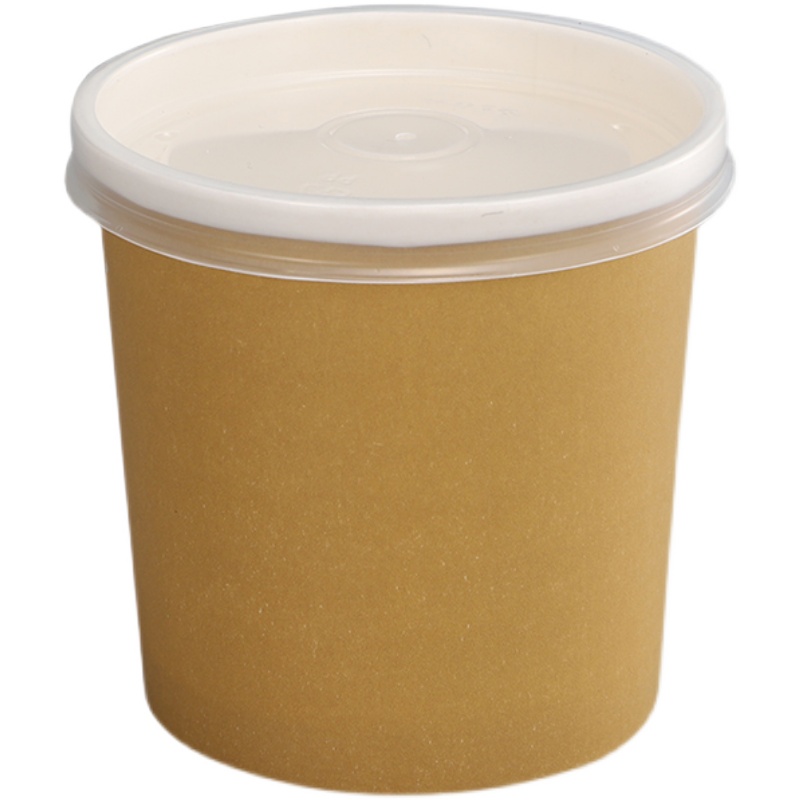 一次性环保餐盒加厚牛皮纸碗防漏外卖打包汤杯圆型汤碗粥面碗带盖