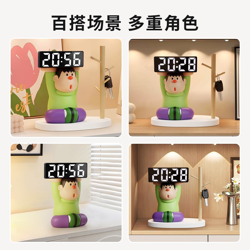 胖虎电子时钟摆件数字座钟表摆台式桌面台钟玄关客厅电视柜装饰品