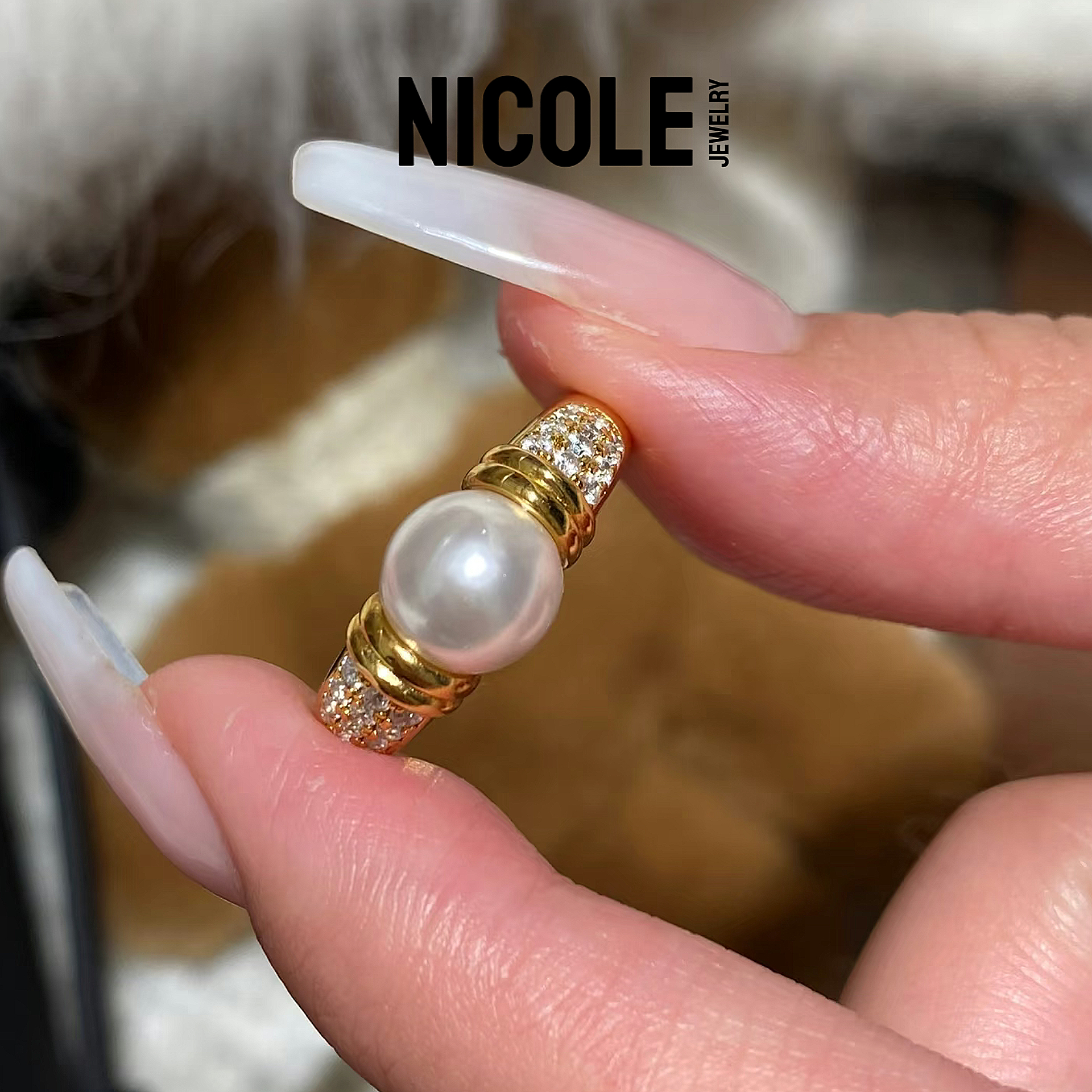 Nicole轻奢S925纯银vintage珍珠戒指女法式复古老钱风镶锆麻花