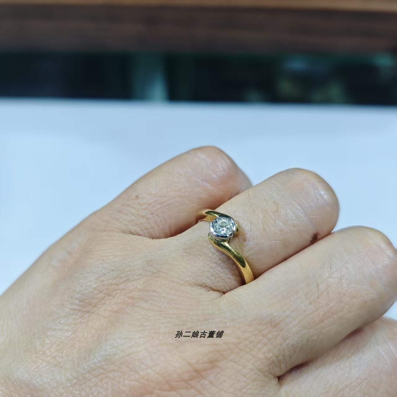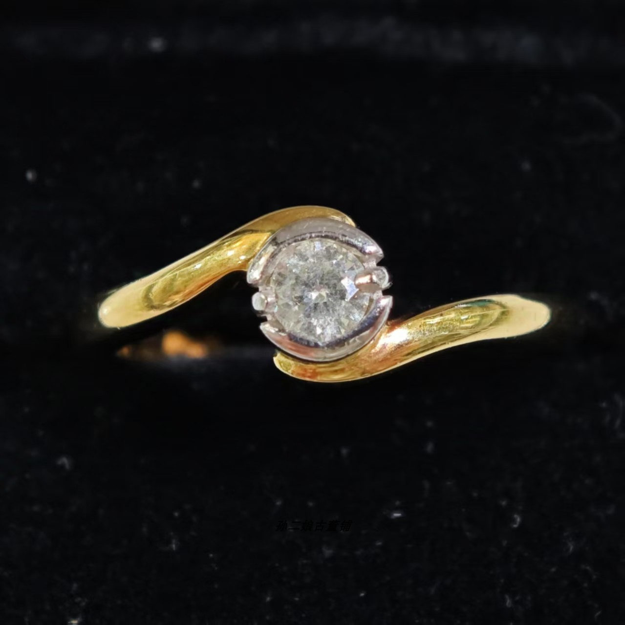 英国Vintage珠宝伦敦产18K黄金镶嵌天然钻石设计款戒指经典时尚