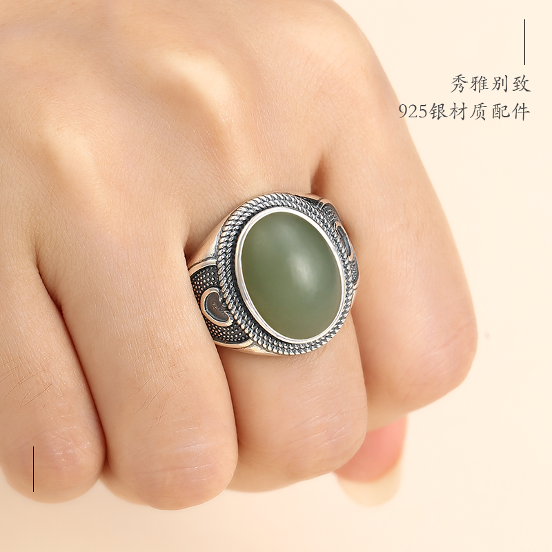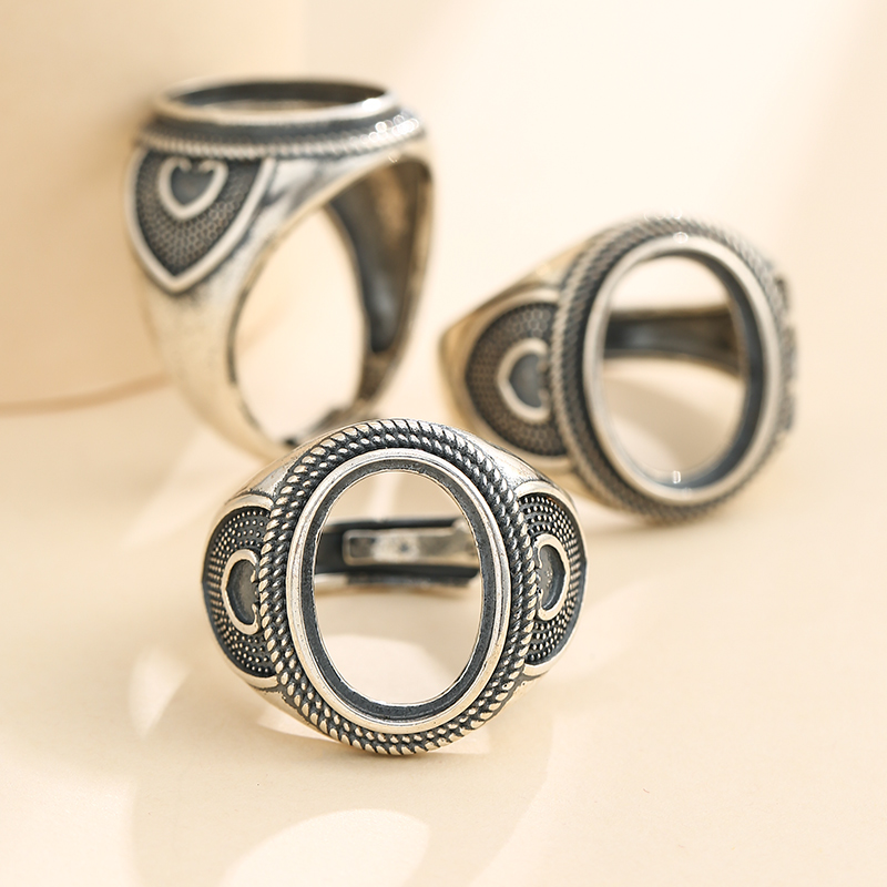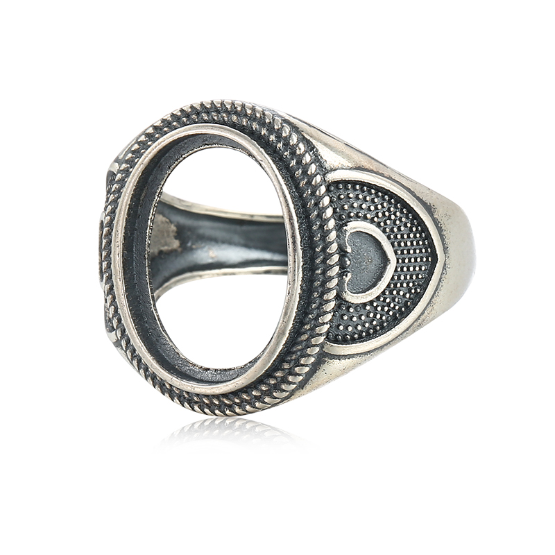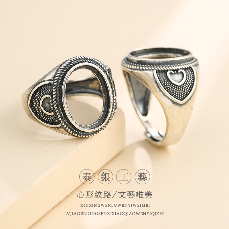 S925纯银戒指空托复古泰银霸气男女款DIY蜜蜡松石琥珀镶嵌托16*21